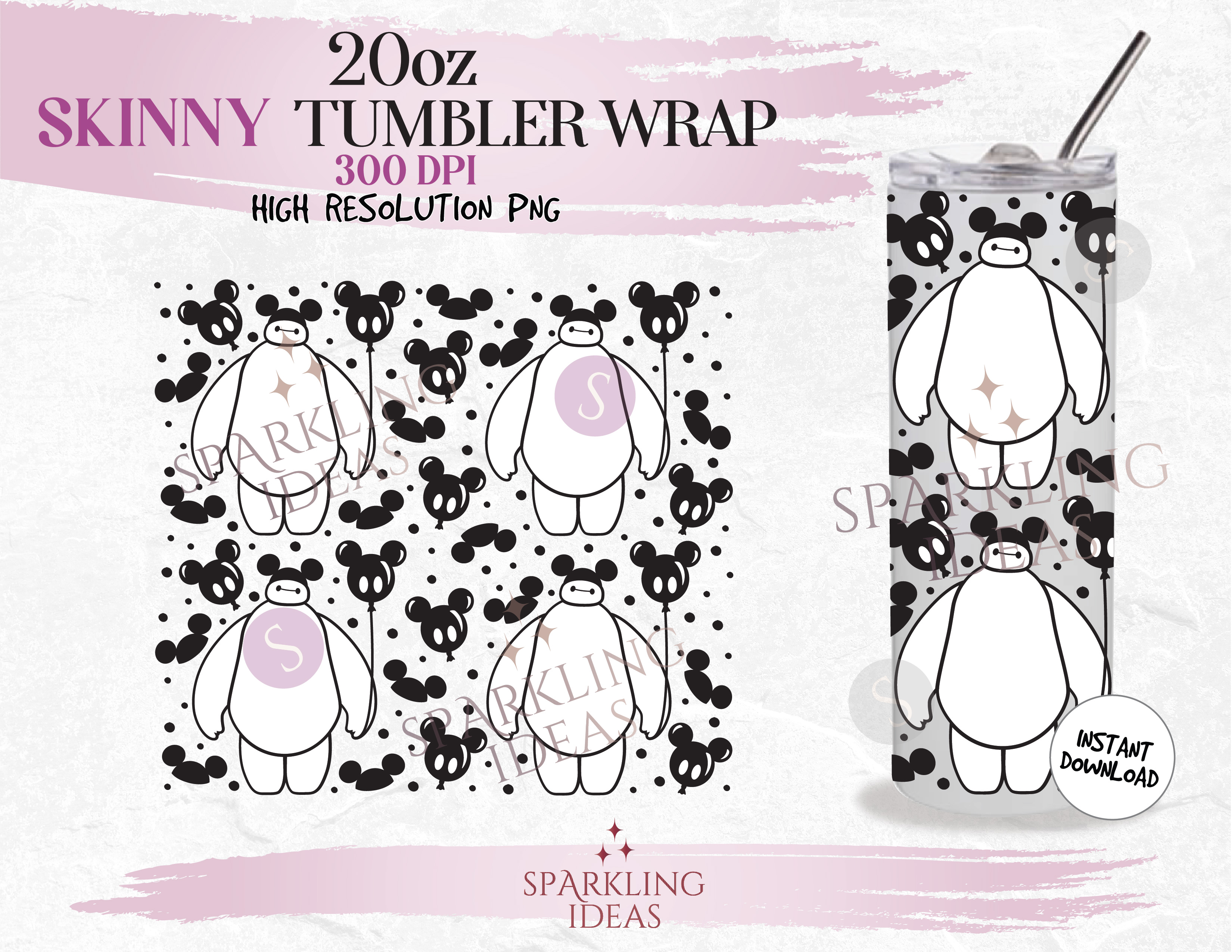20 oz Baymax holding a Mouse Balloon Tumbler Wrap, Big Hero Tumbler png, Baymax Robot Digital png Sublimation