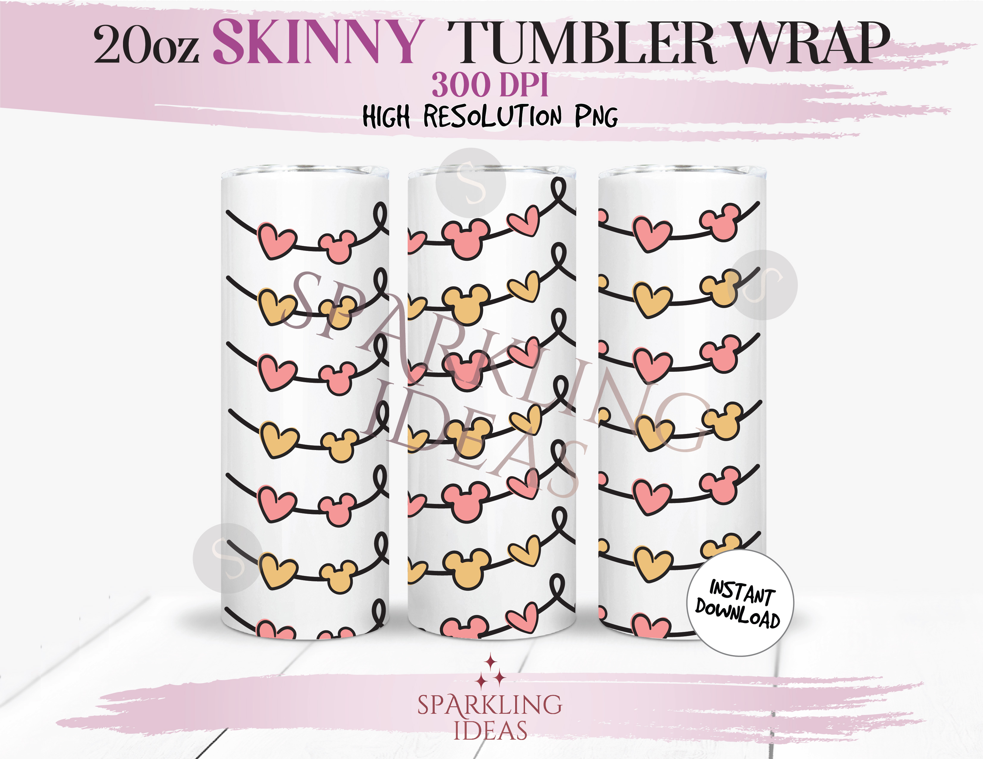 20 oz Love Heart String Tumbler Wrap, Heart Mouse Tumbler png, Pink Mouse Heart Digital png Sublimation