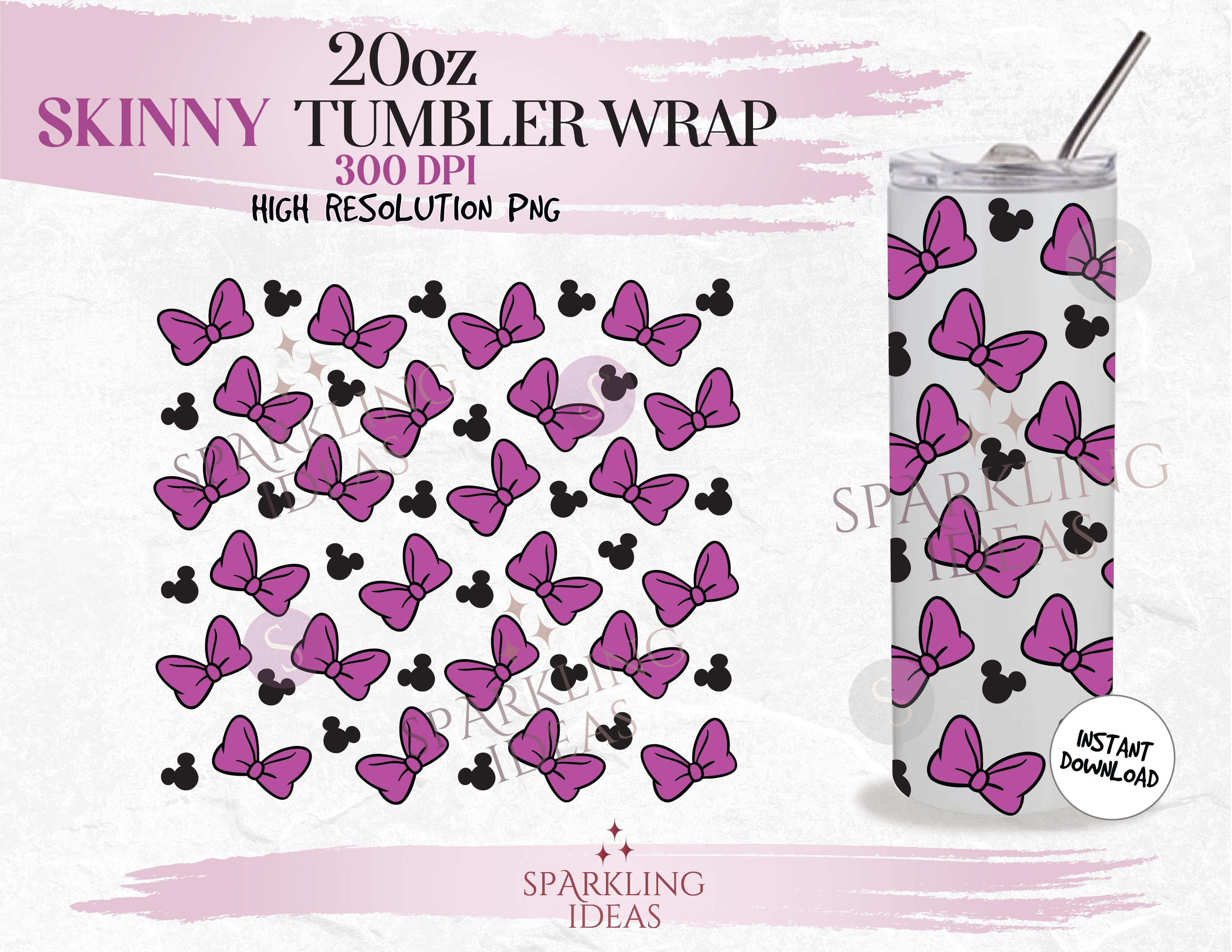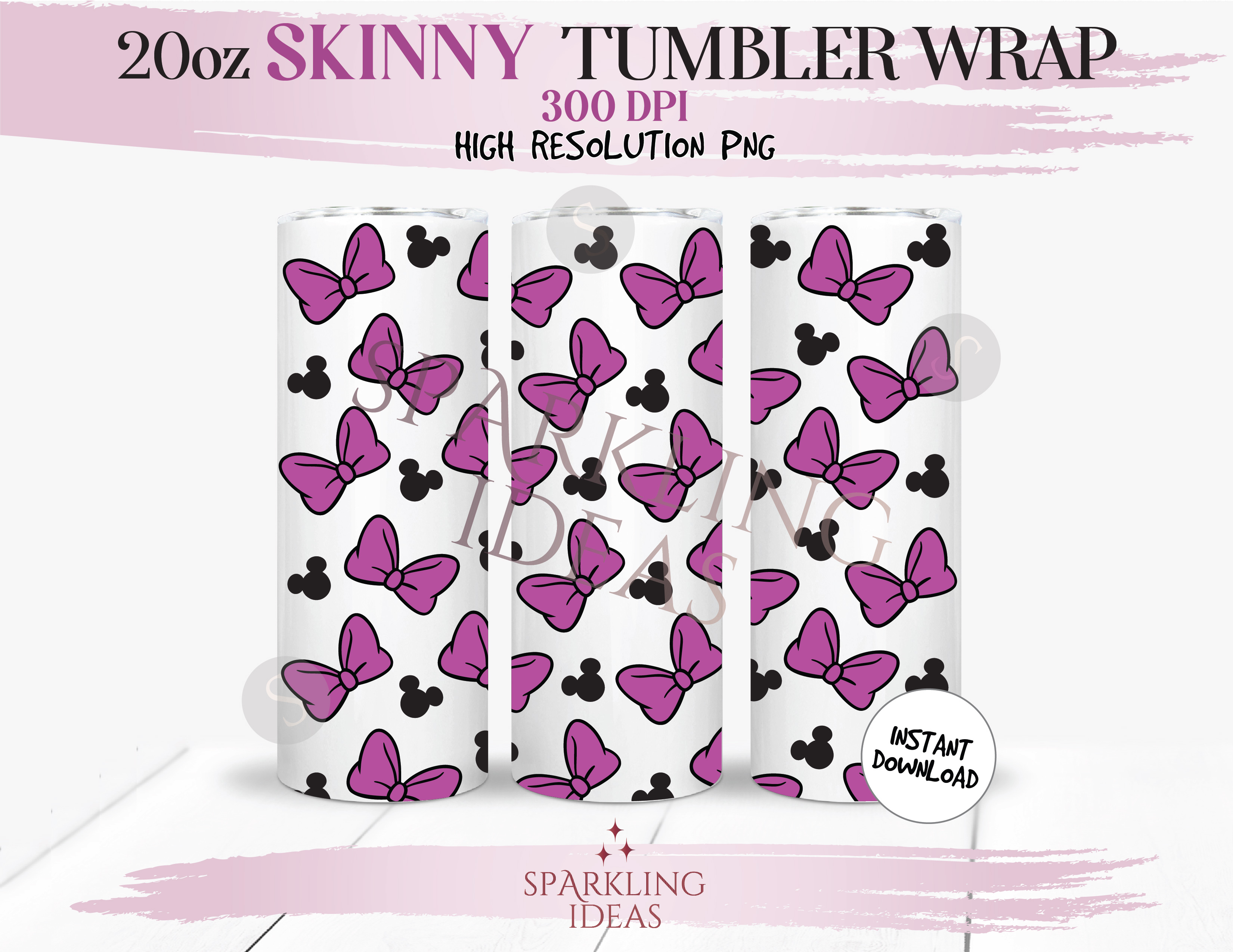 20 oz Minnie Bow Tumbler Wrap, Mouse Ears Tumbler png, Pink Bow Mouse Digital png Sublimation