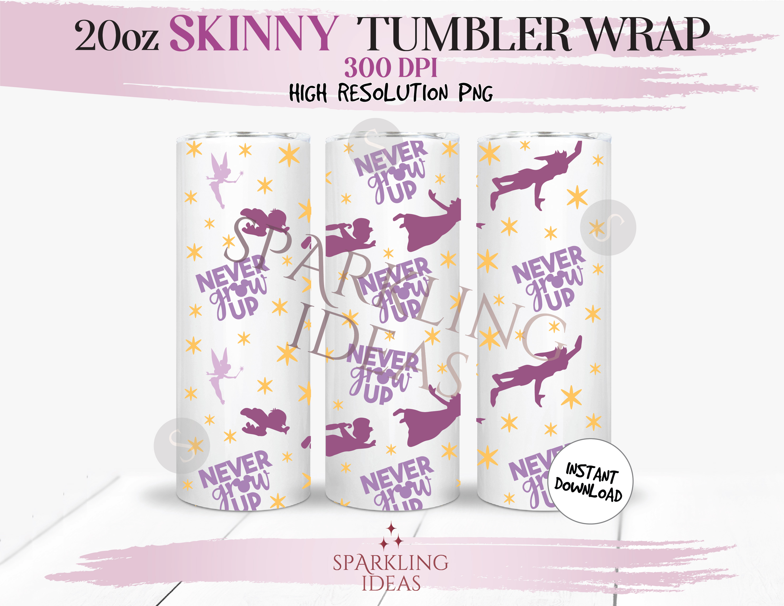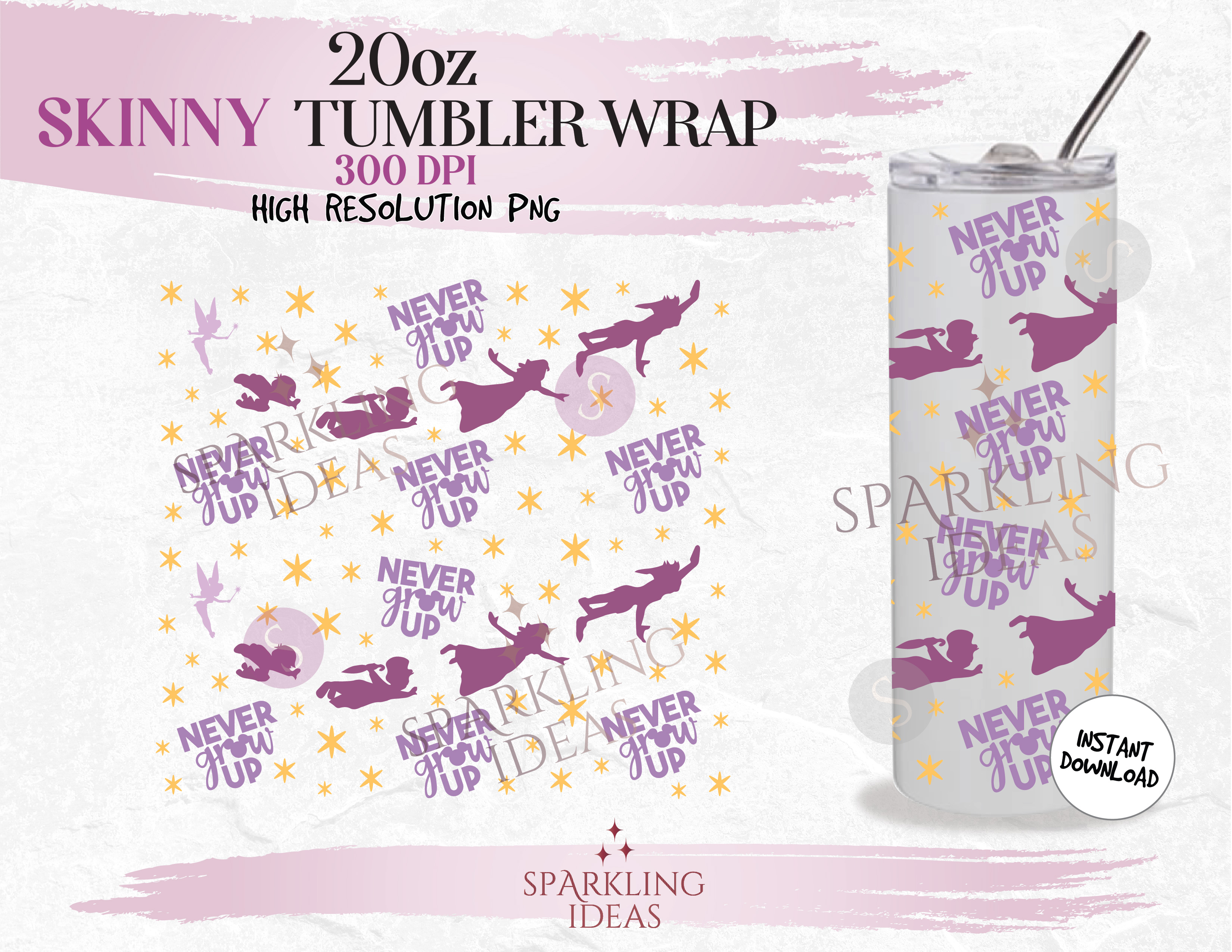 20 oz Skinny Never Grow Up Tumbler Wrap, Peter Pan Tumbler png, Peter Pan Neverland Digital png Sublimation