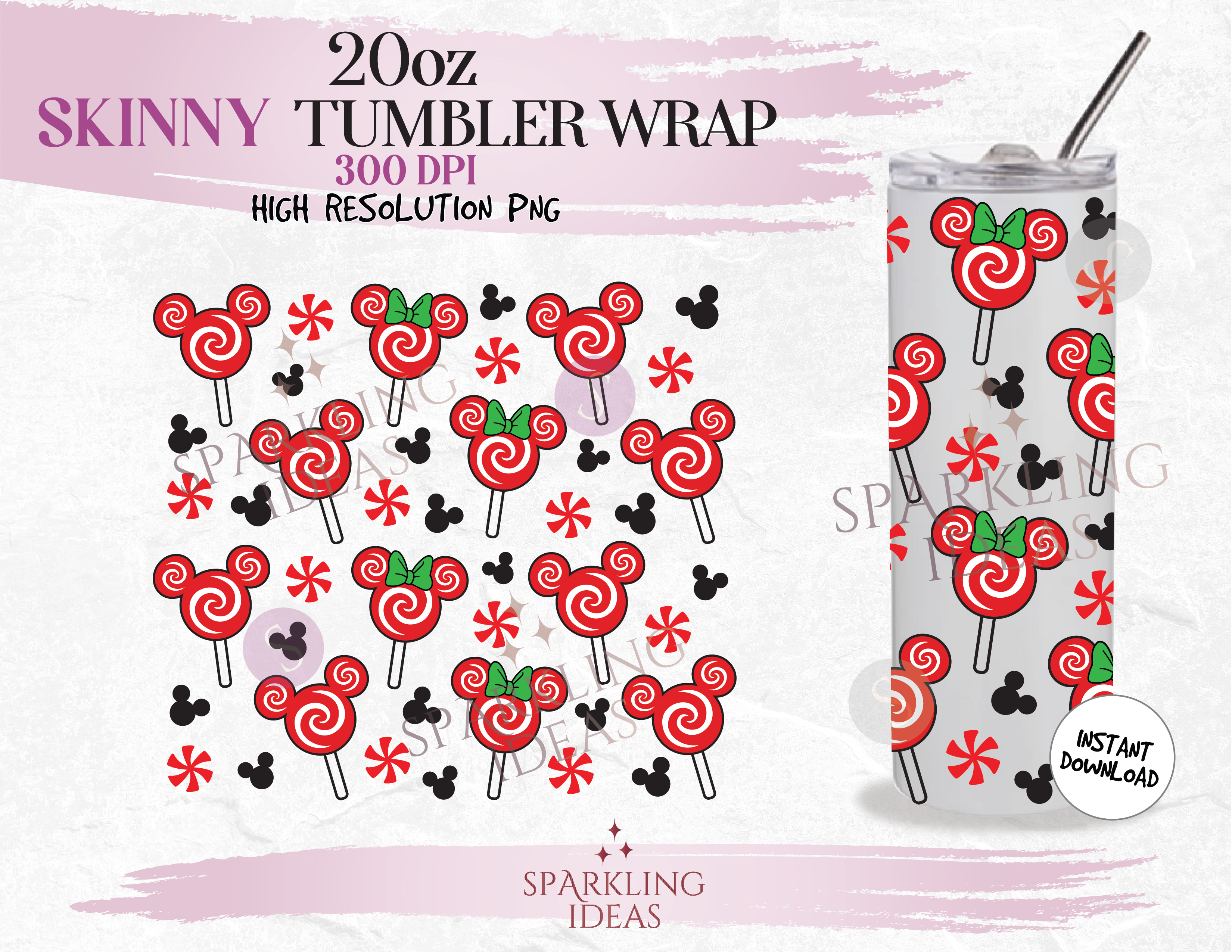 20 oz Skinny Tumbler Candy Cane Lollipop Christmas Wrap, Mouse Peppermint Tumbler, Magical Christmas Inspired Digital PNG Sublimation