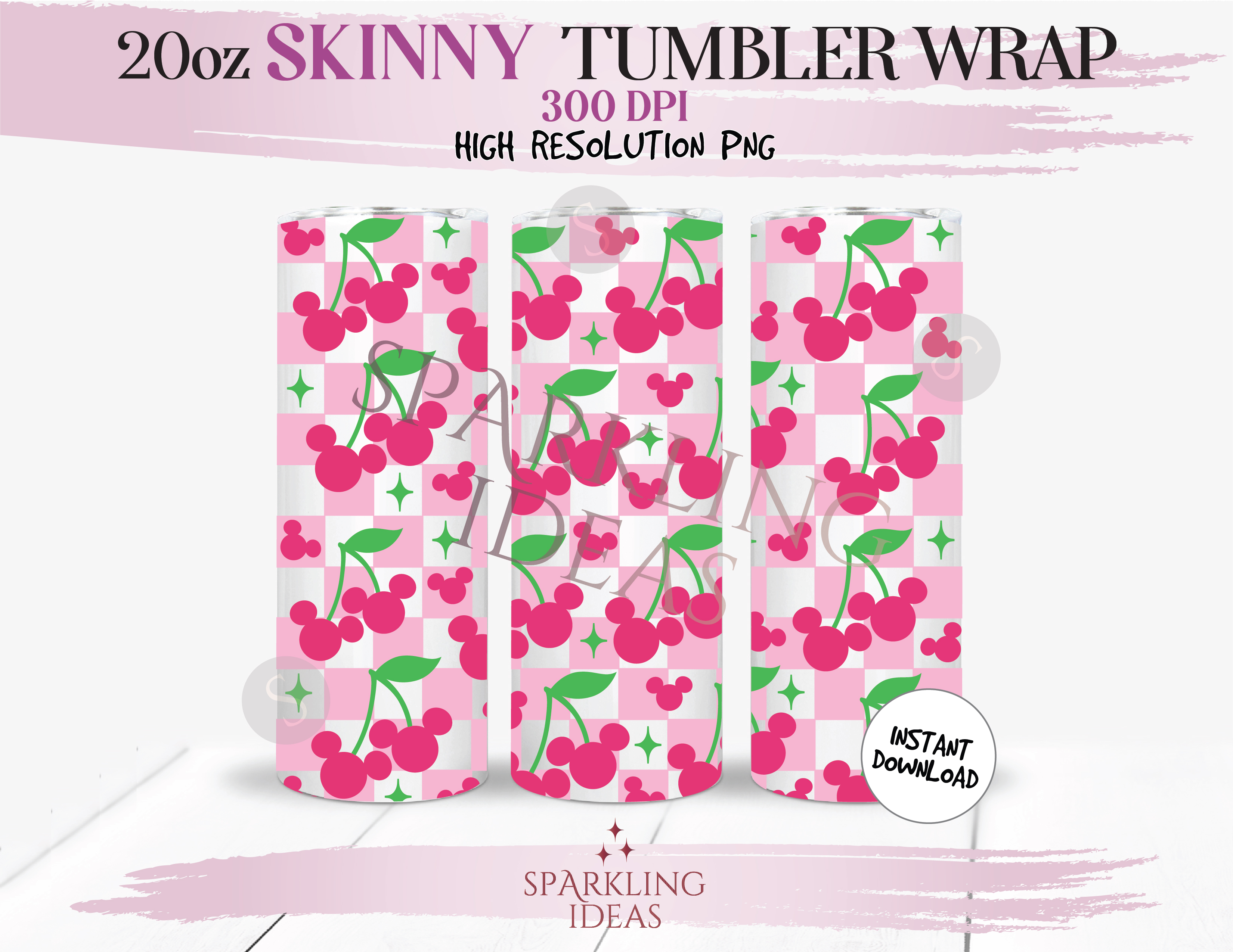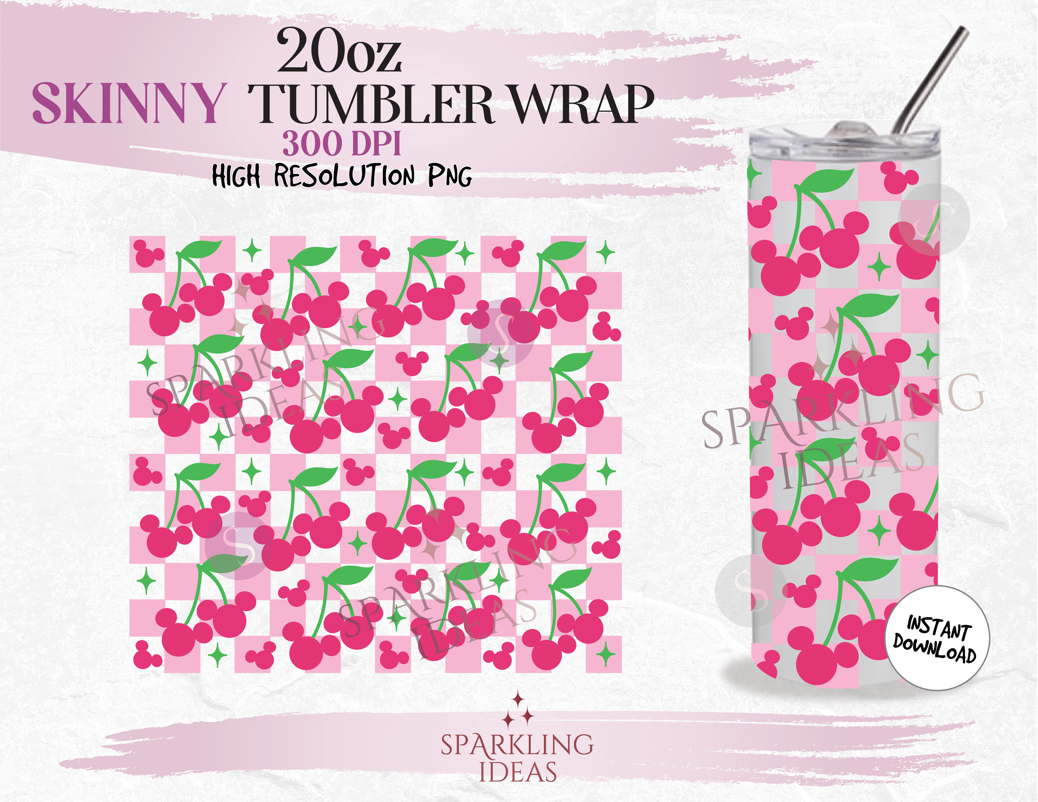 20 oz Skinny Tumbler Checkered Mickey Cherries Wrap, Mouse Cherry Tumbler, Magical World Digital PNG Sublimation