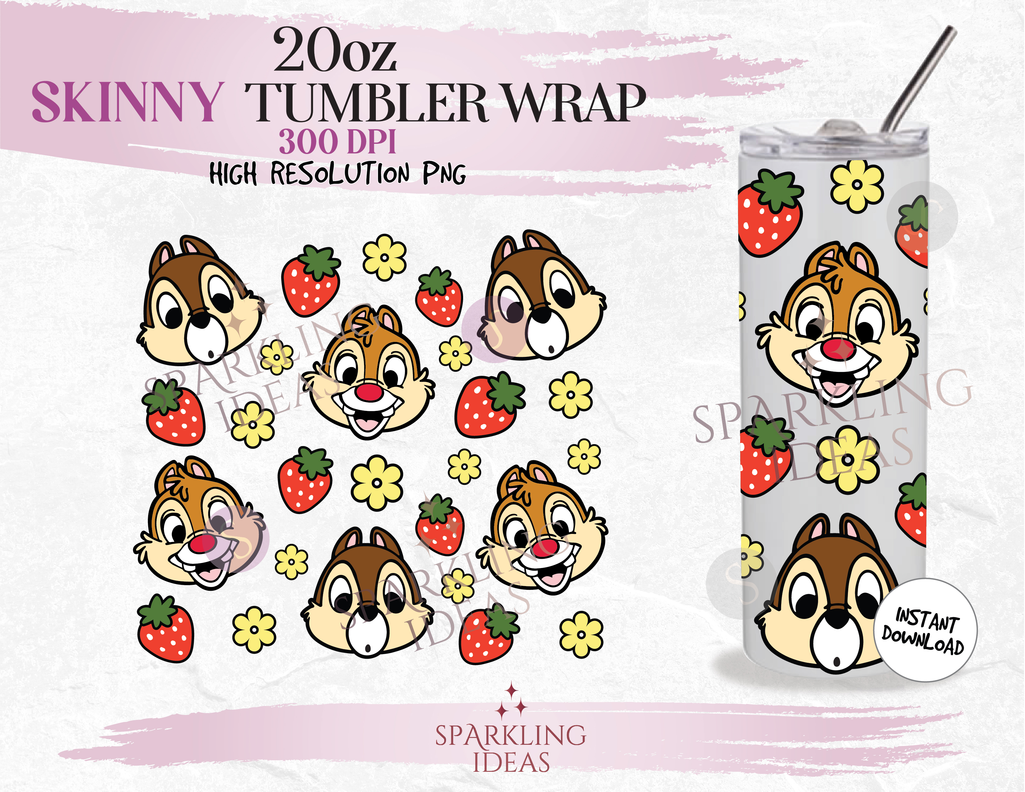 20 oz Skinny Tumbler Chip and Dale Wrap, Chipmunk Double Trouble Tumbler, Magical World Digital PNG Sublimation