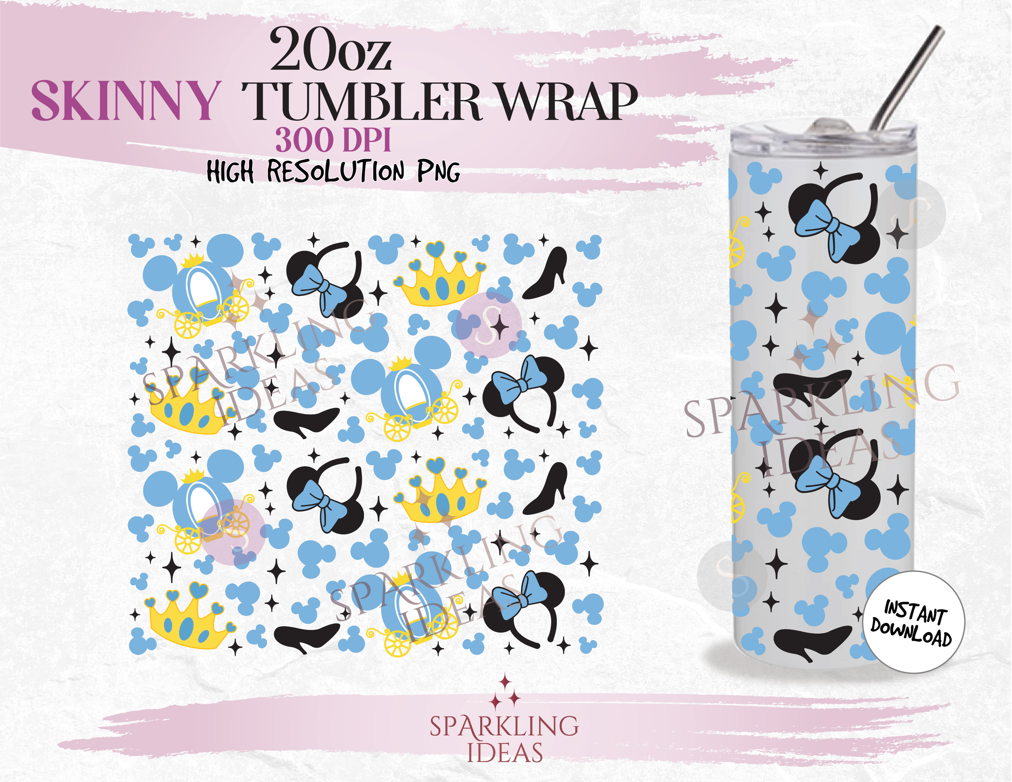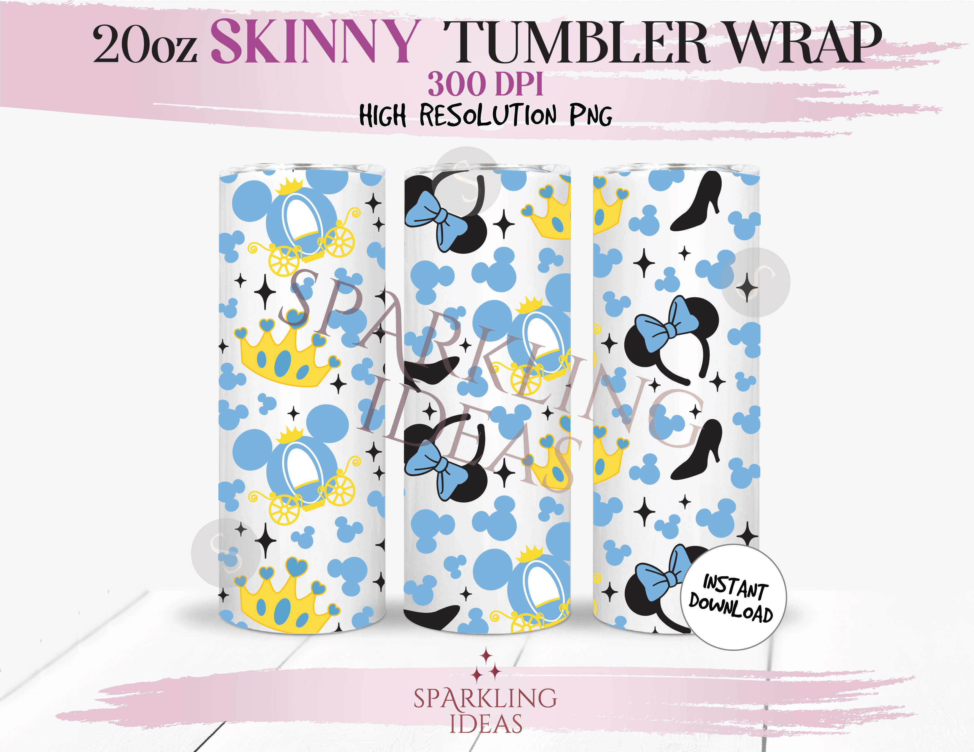 20 oz Skinny Tumbler Cinderella Carriage Wrap, Fairy Wish Tumbler, Princess Crown Ears Digital PNG Sublimation