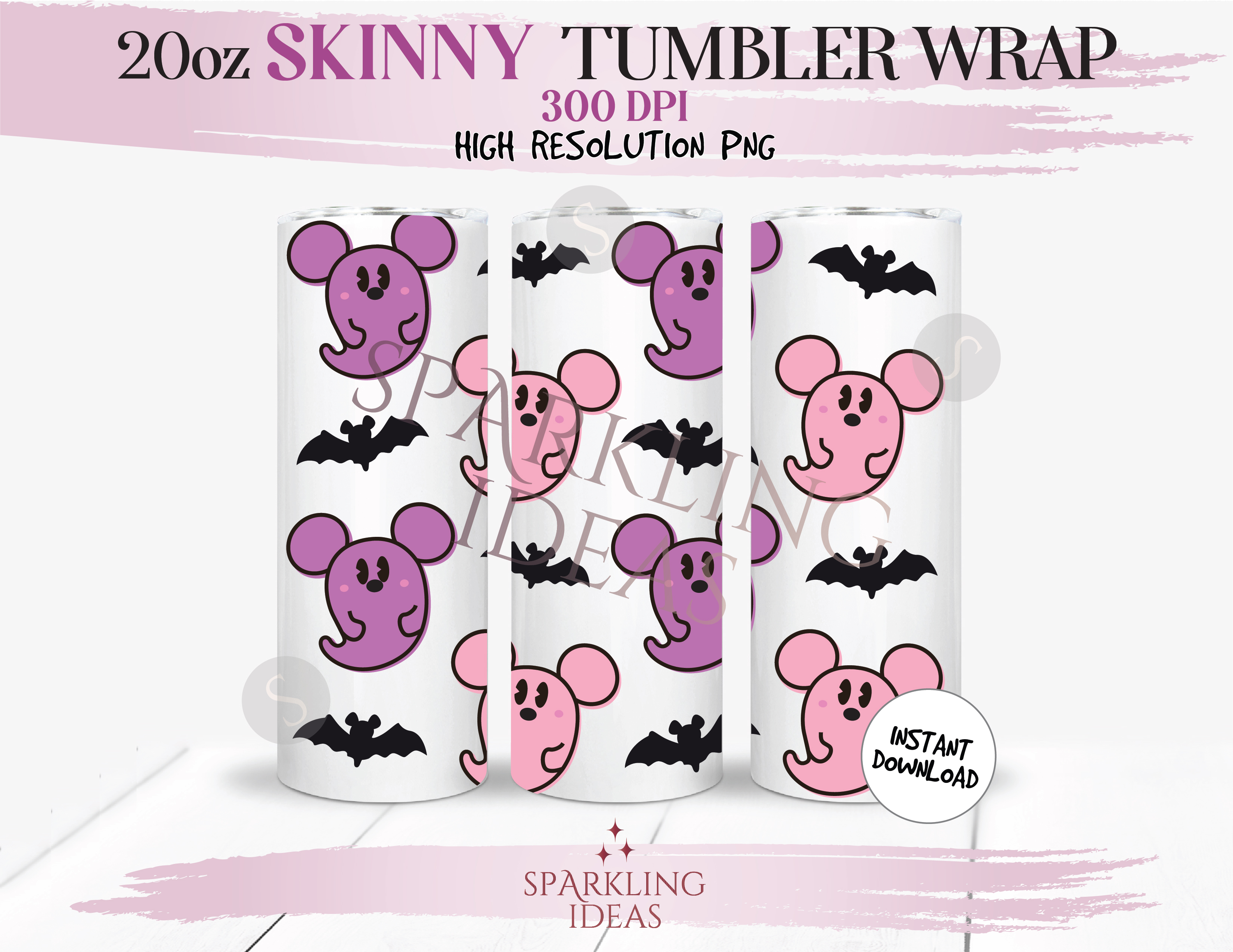 20 oz Skinny Tumbler Cute Mickey Ghost Wrap, Mouse Halloween Tumbler, Pink Mouse Halloween Digital PNG Sublimation