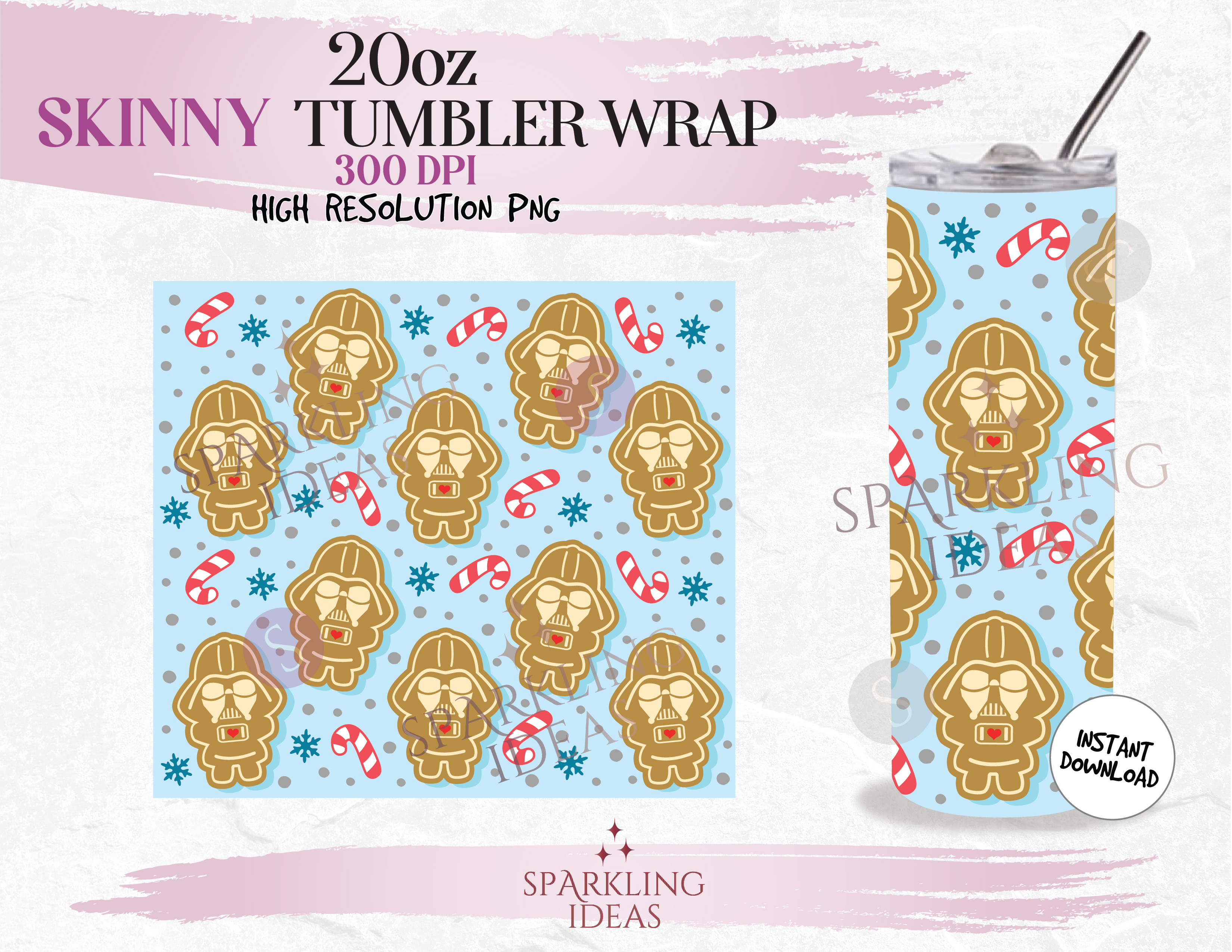20 oz Skinny Tumbler Darth Vader Gingerbread Cookie Wrap, Star Wars Christmas Tumbler, Magical Christmas Inspired Digital png Sublimation