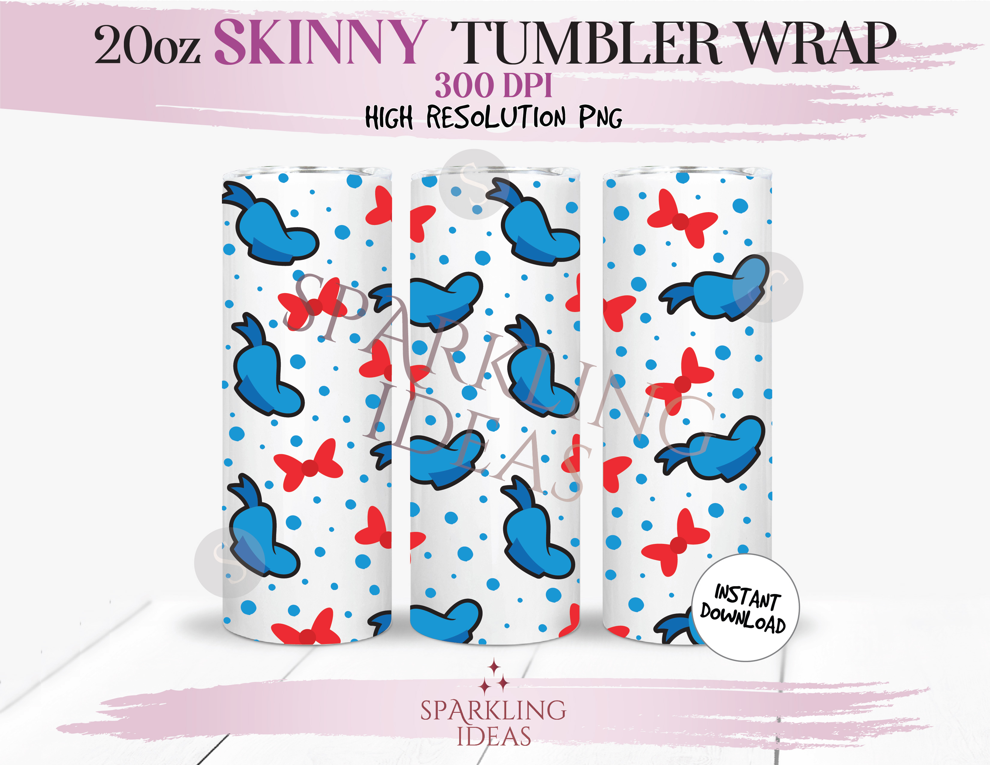 20 oz Skinny Tumbler Donald Hat Wrap, Donald Bow Tumbler png, Magical World Inspired Digital png Sublimation