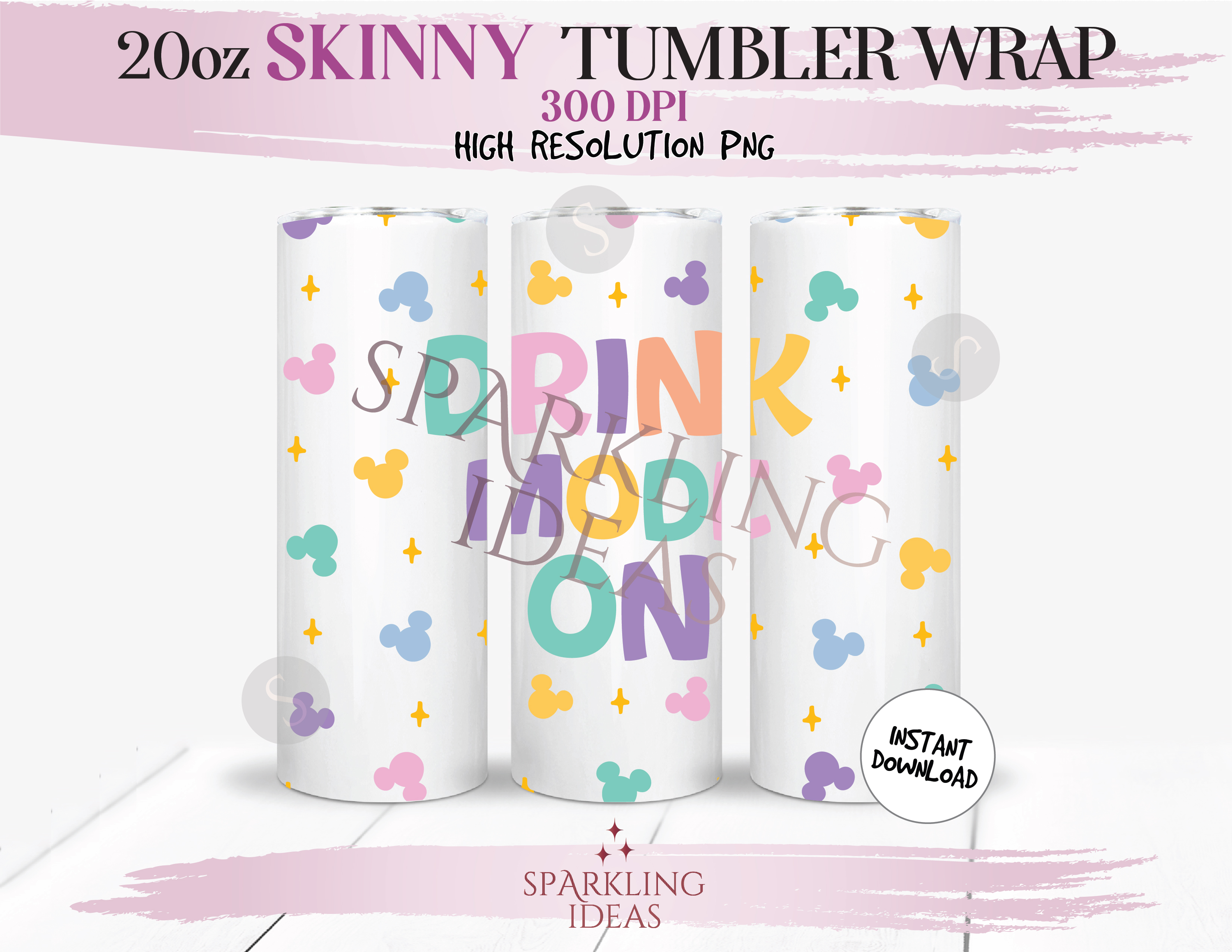 20 oz Skinny Tumbler Drink Mode On Wrap, Magical Place Tumbler, Mouse Head Digital PNG Sublimation