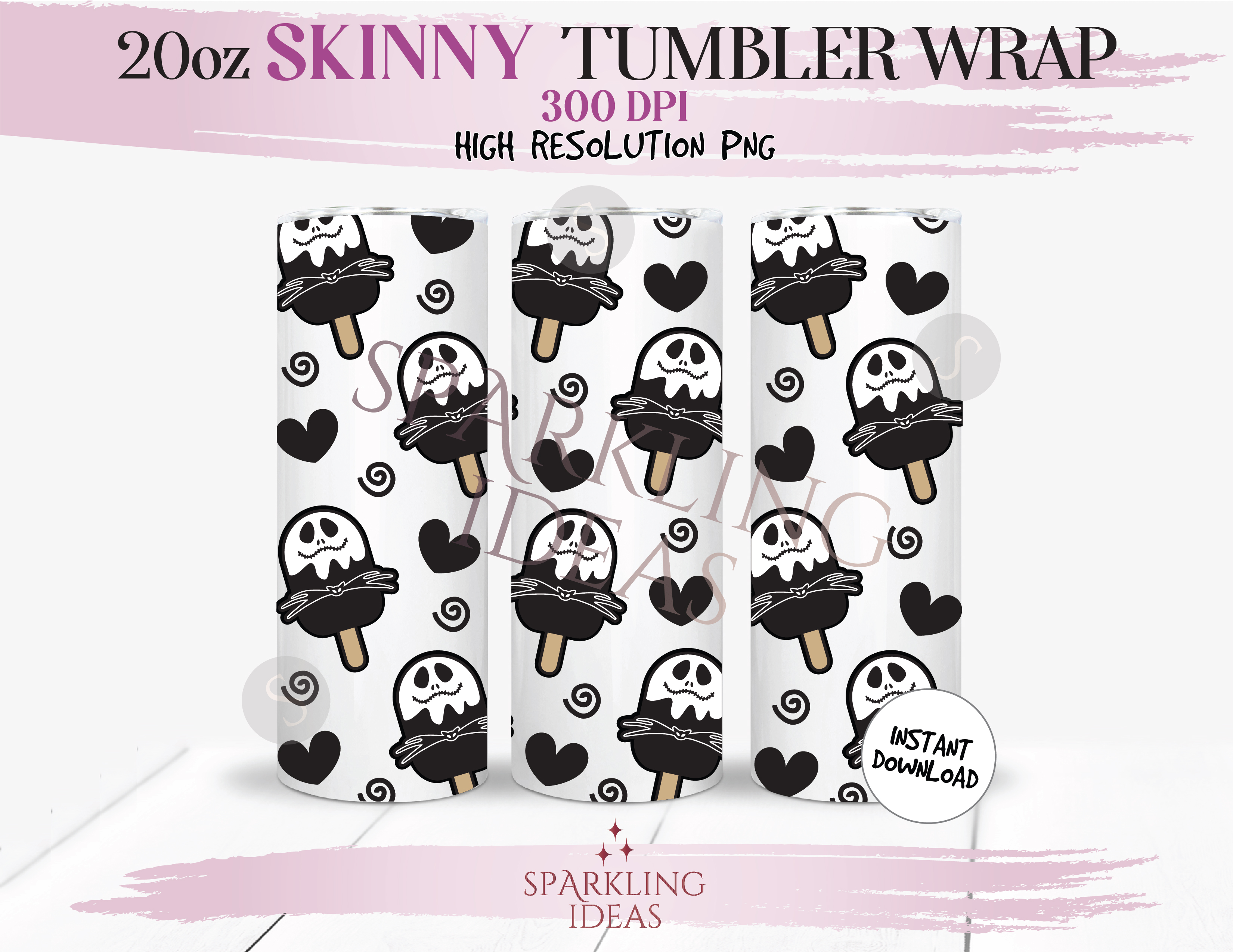 20 oz Skinny Tumbler Jack Popsicle Wrap, Ice Cream  Jack Skellington Tumbler, Summer Snack Digital PNG Sublimation