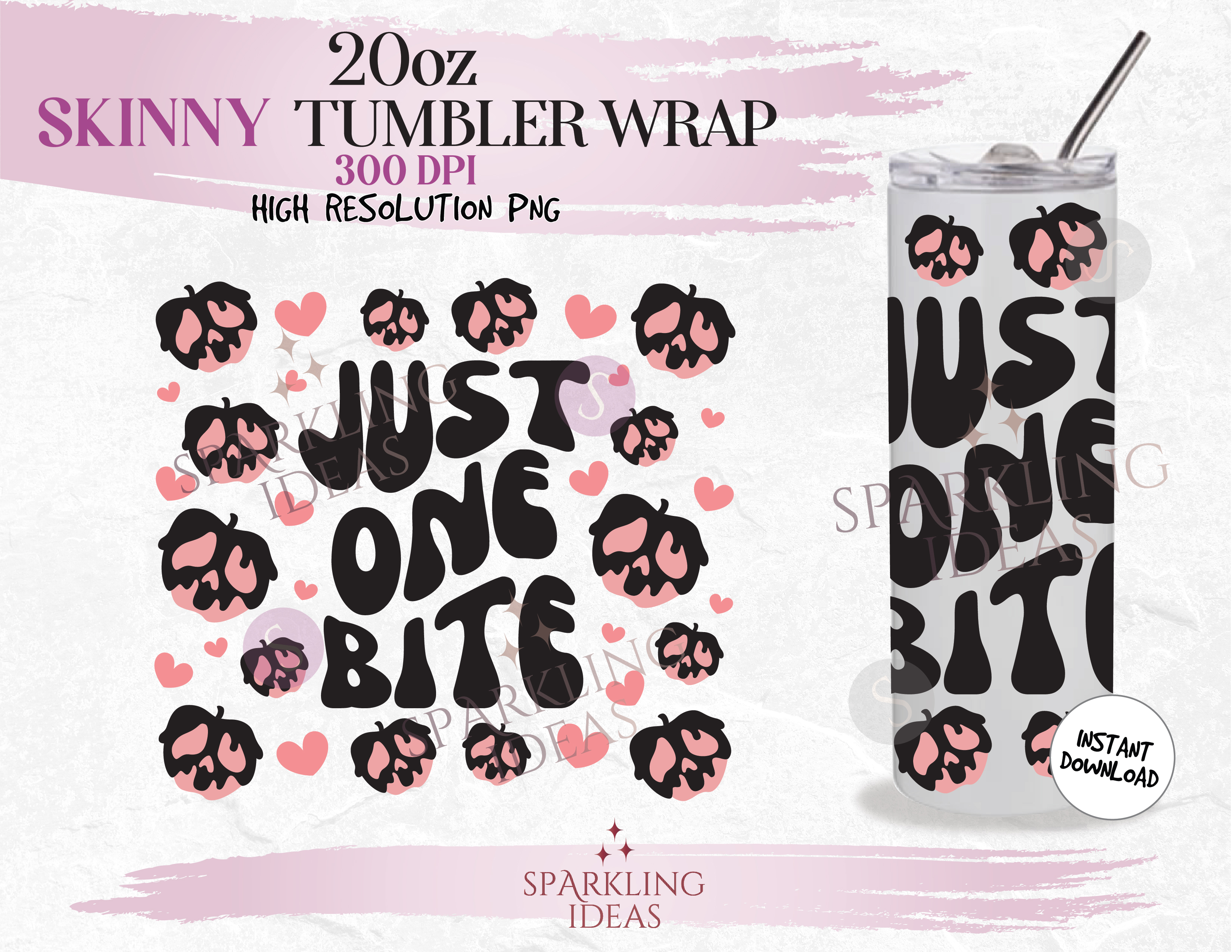 20 oz Skinny Tumbler Just One Bite Wrap, Retro Groovy Halloween Tumbler, Poison Apple Digital PNG Sublimation