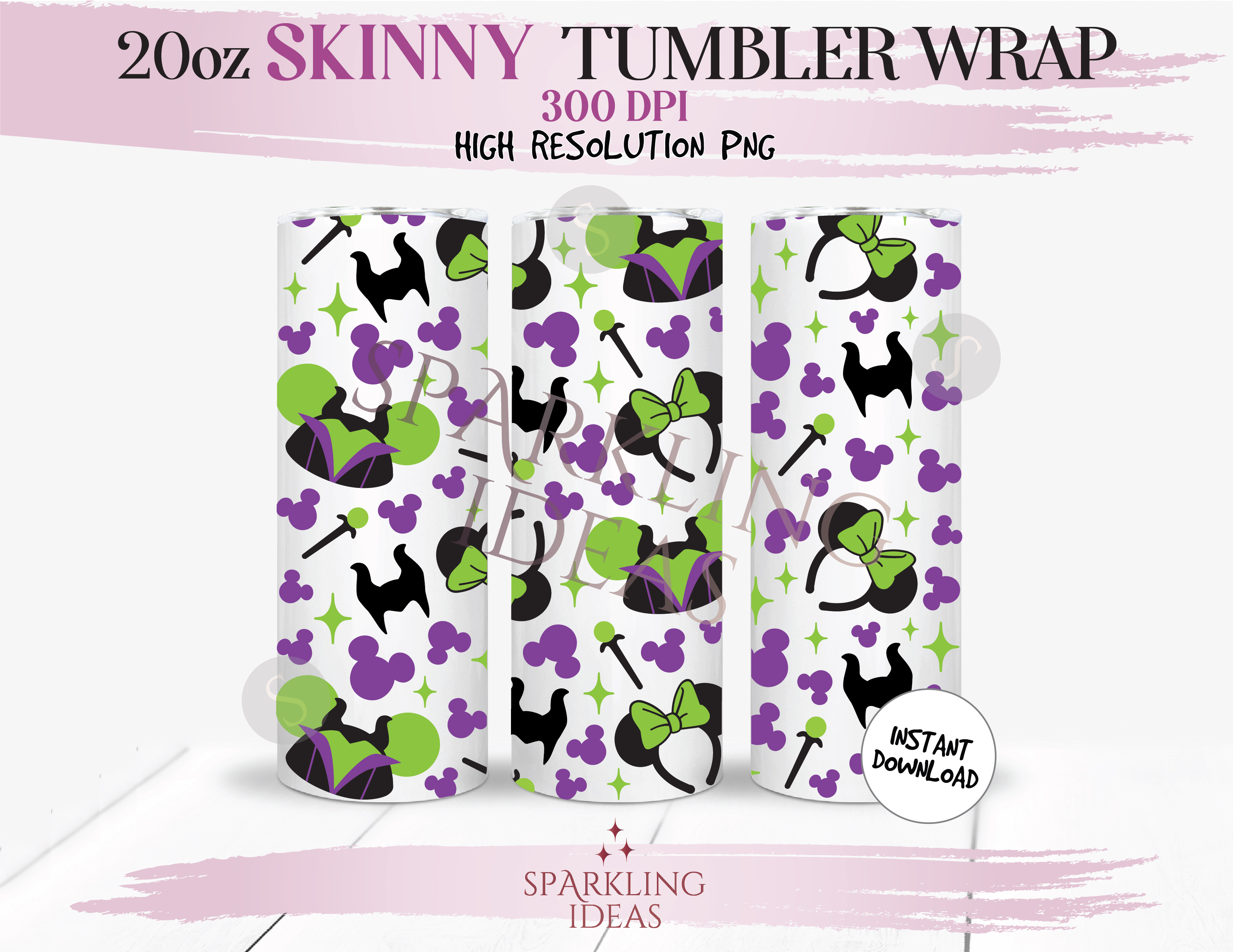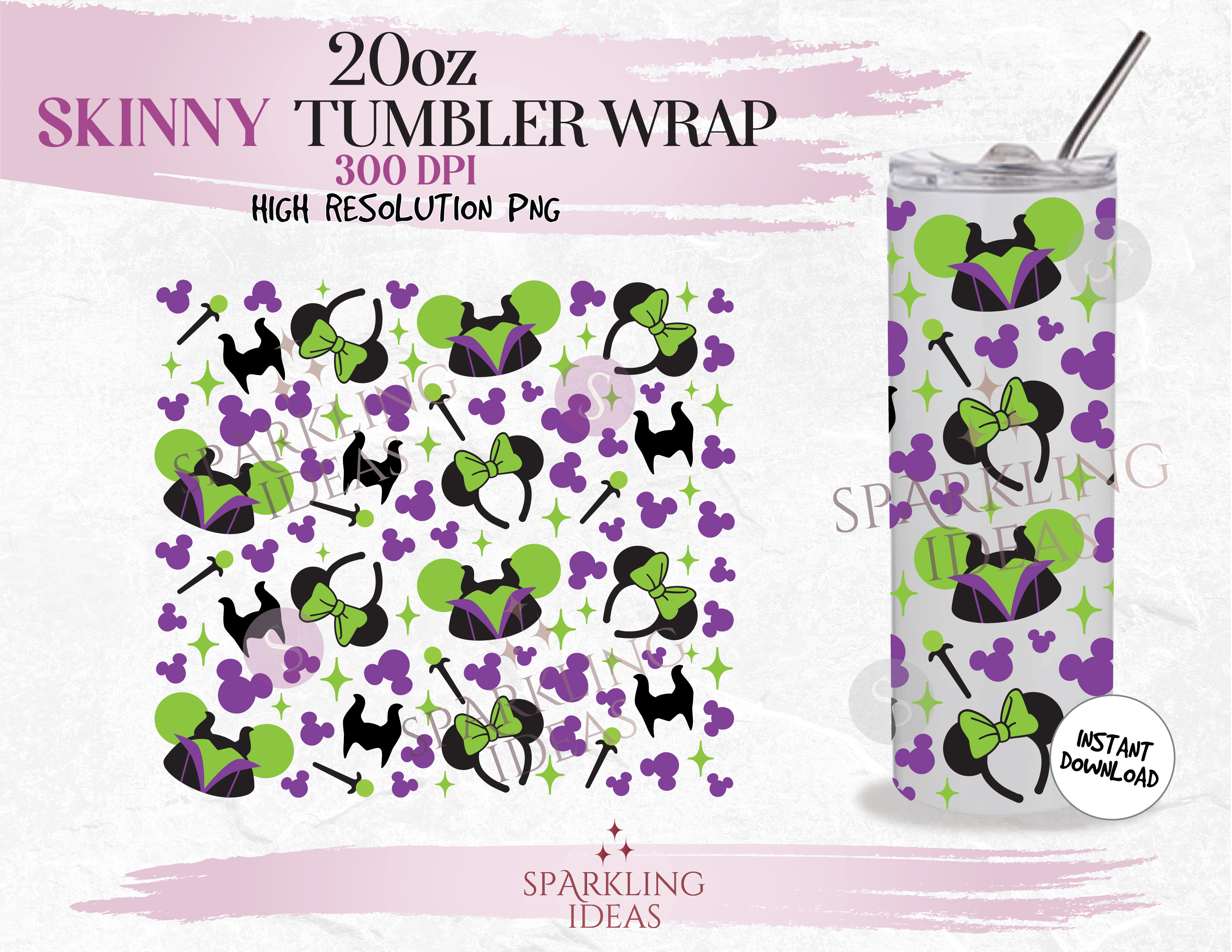 20 oz Skinny Tumbler Maleficent Ears Wrap, Villains Ears Hat Inspired Tumbler, Magical Ears Digital PNG Sublimation