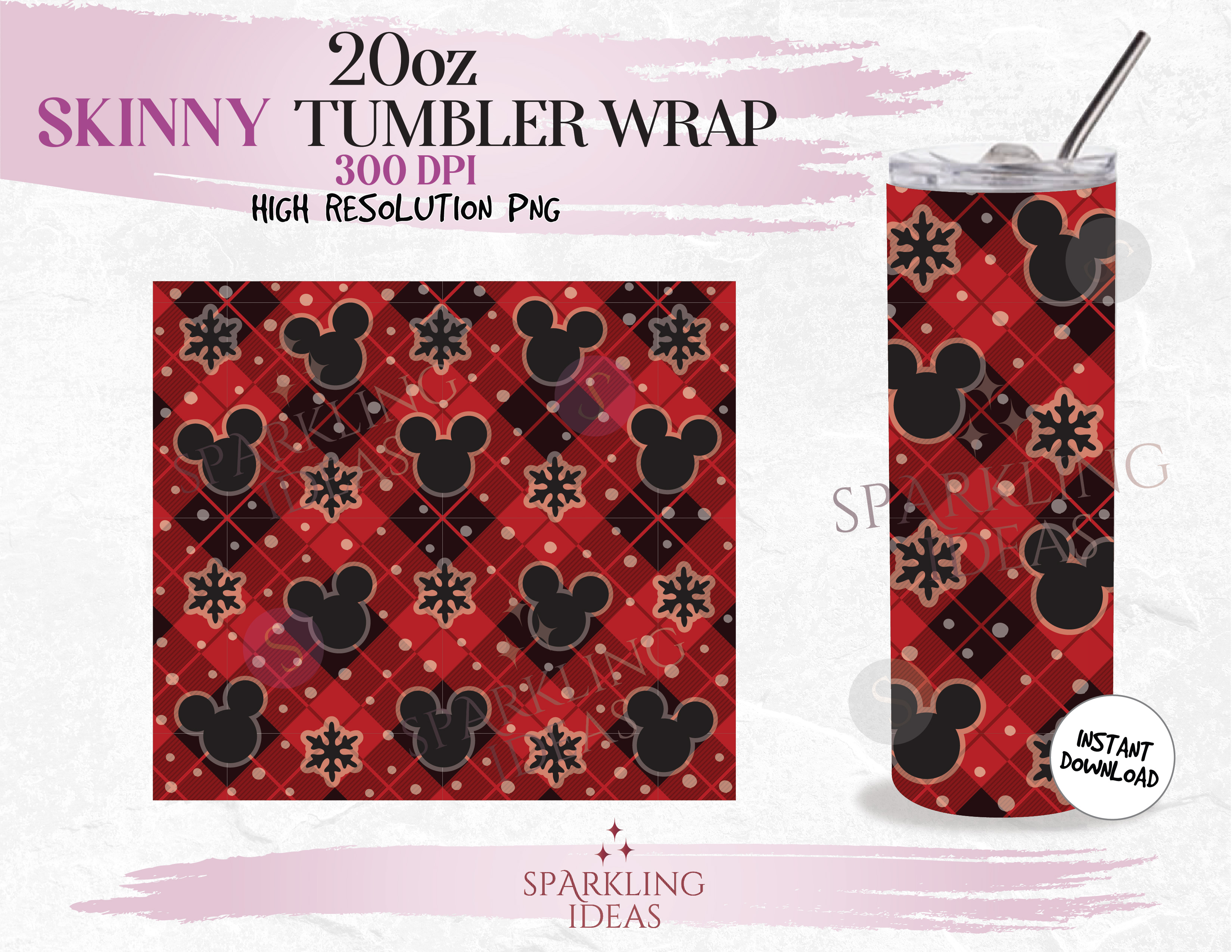 20 oz Skinny Tumbler Mickey Ears Buffalo Plaid Wrap, Snowflakes Christmas Tumbler png, Magical Christmas Inspired Digital png Sublimation