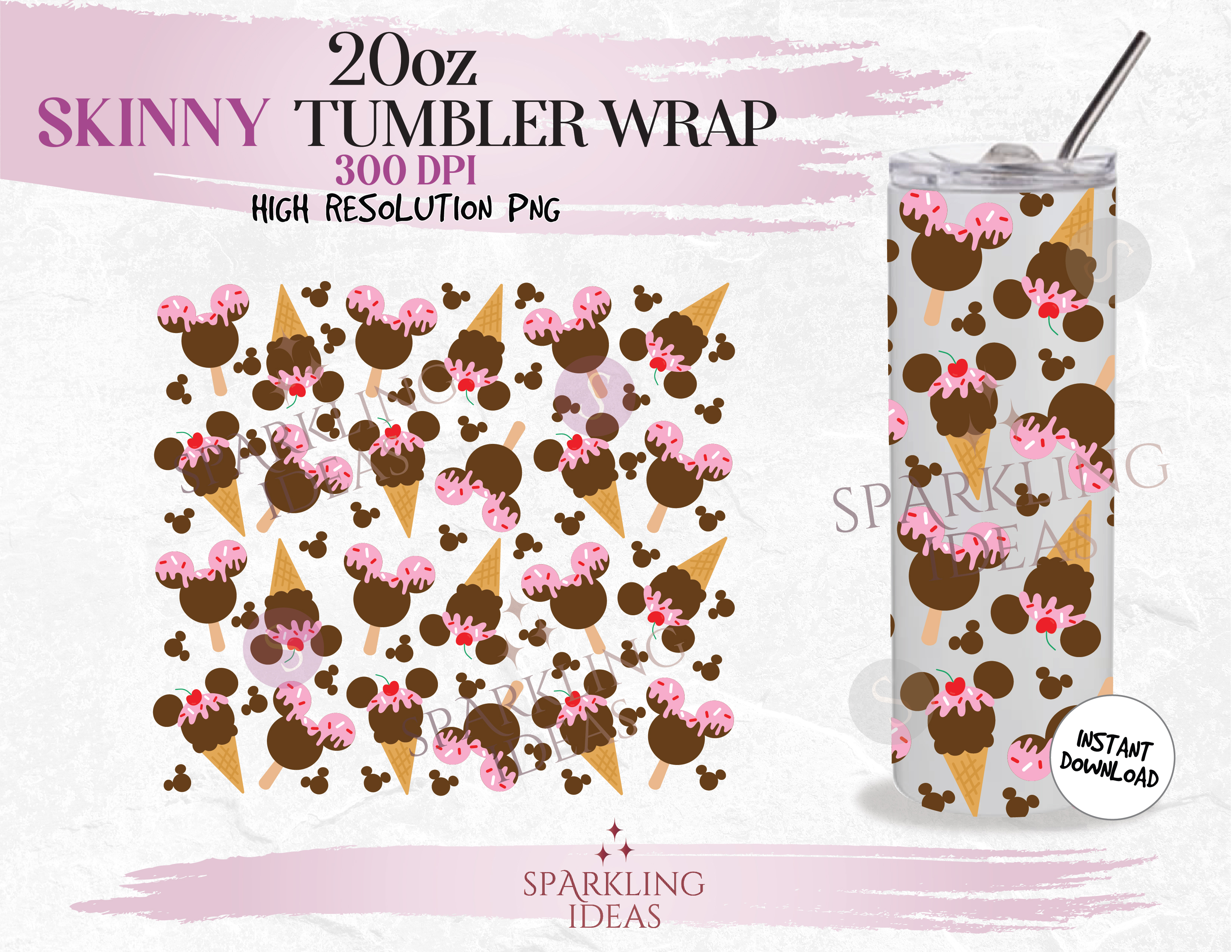 20 oz Skinny Tumbler Mickey Ears Chocolaet Ice Cream Wrap, Ice Cream Snack Ears Tumbler, Summer Snack Digital PNG Sublimation