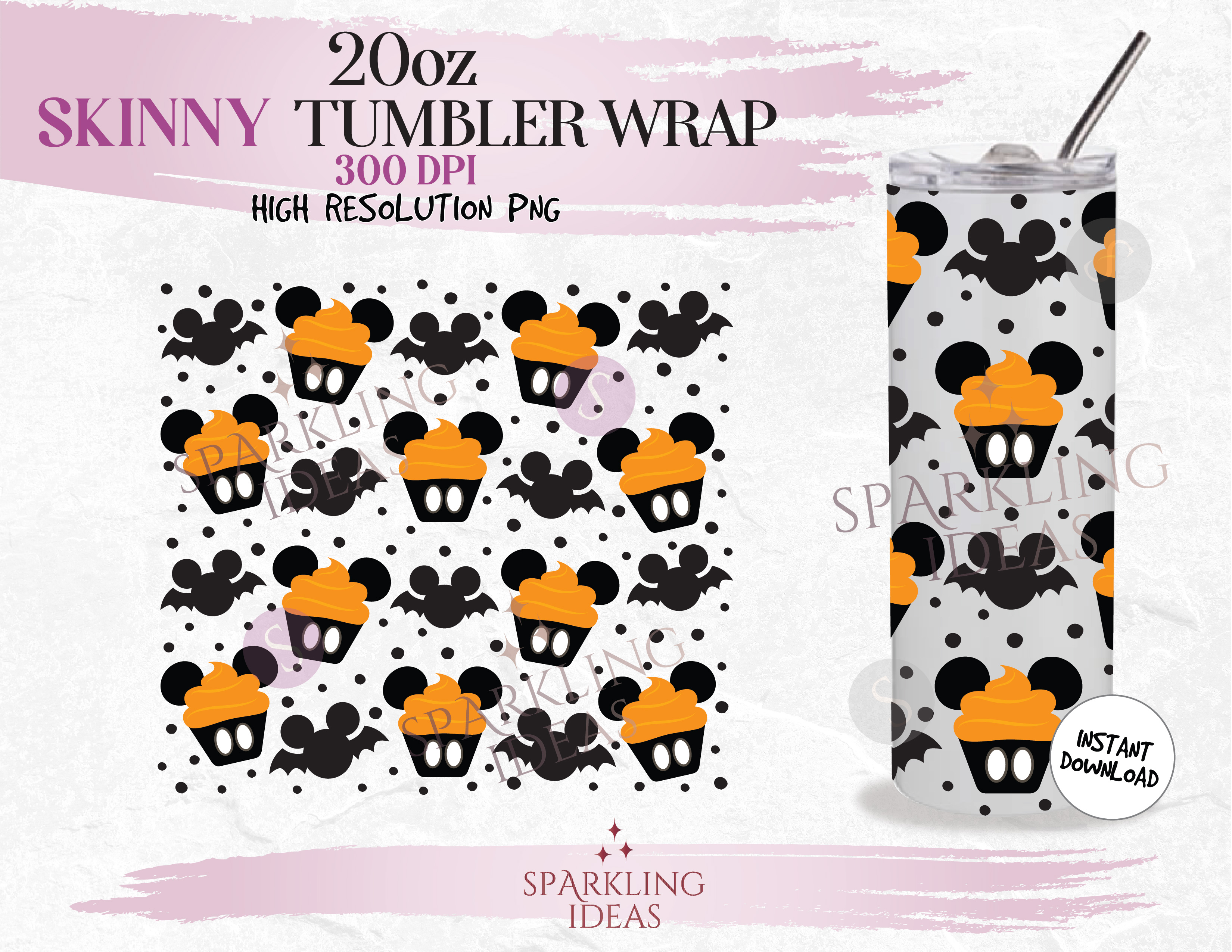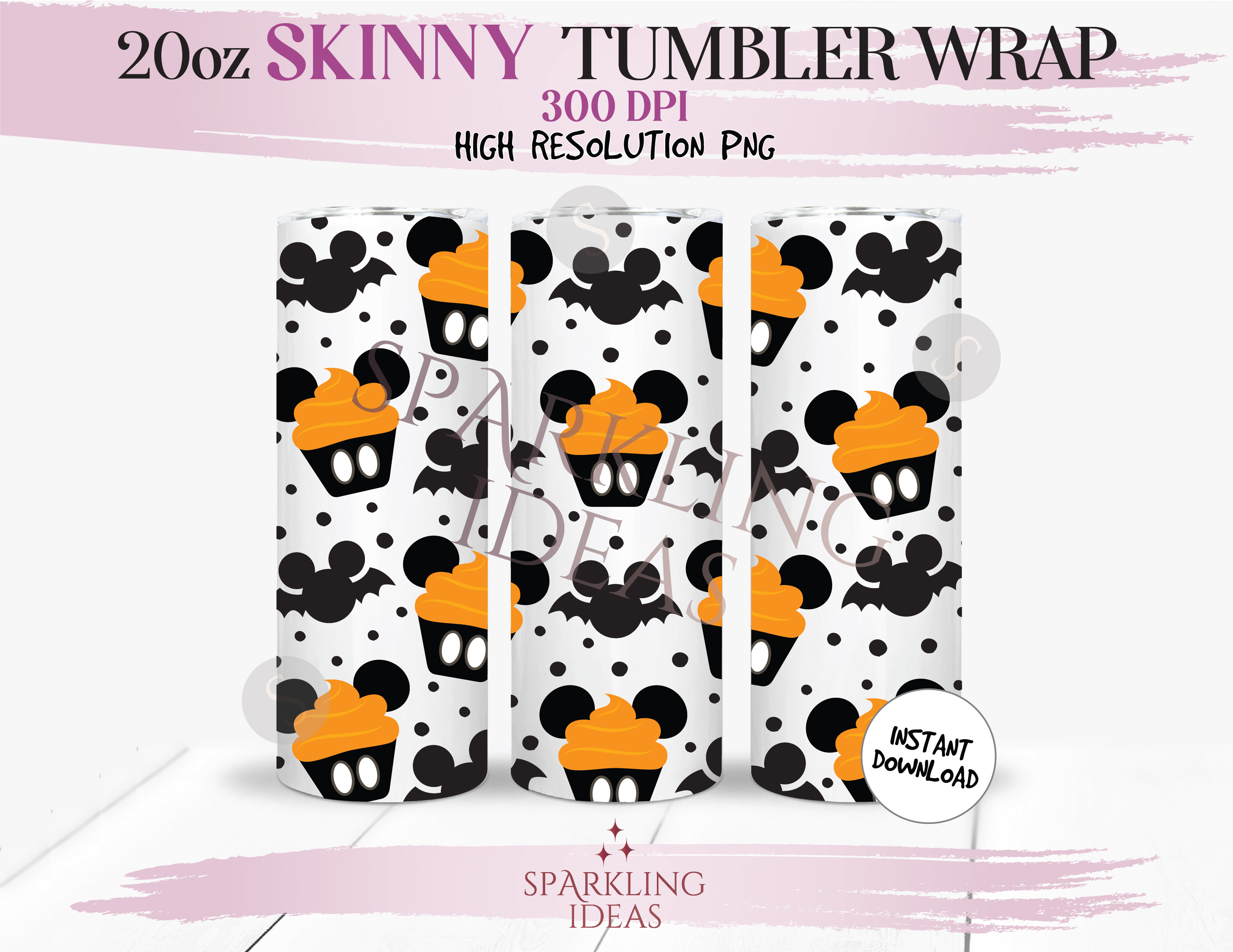 20 oz Skinny Tumbler Mickey Ears Halloween Cupcake Wrap, Mouse Ears Halloween Tumbler png, Mouse Snack Halloween Digital png Sublimation