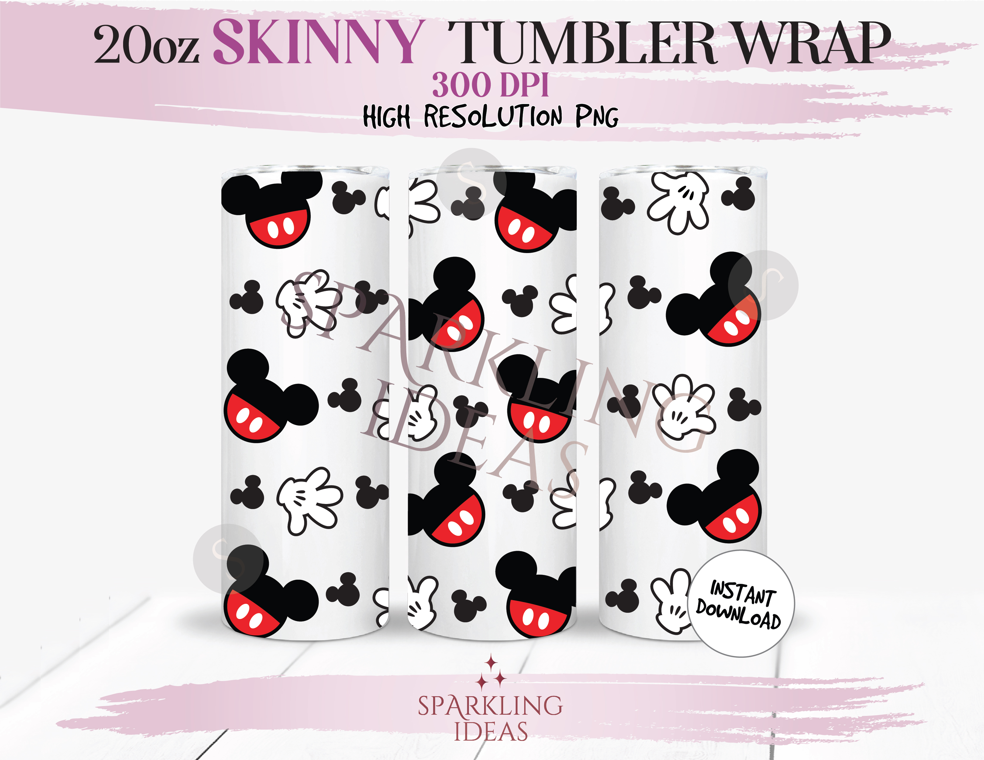 20 oz Skinny Tumbler Mickey Ears Wrap, Magical Place Tumbler, Mouse Gloves PNG Sublimation