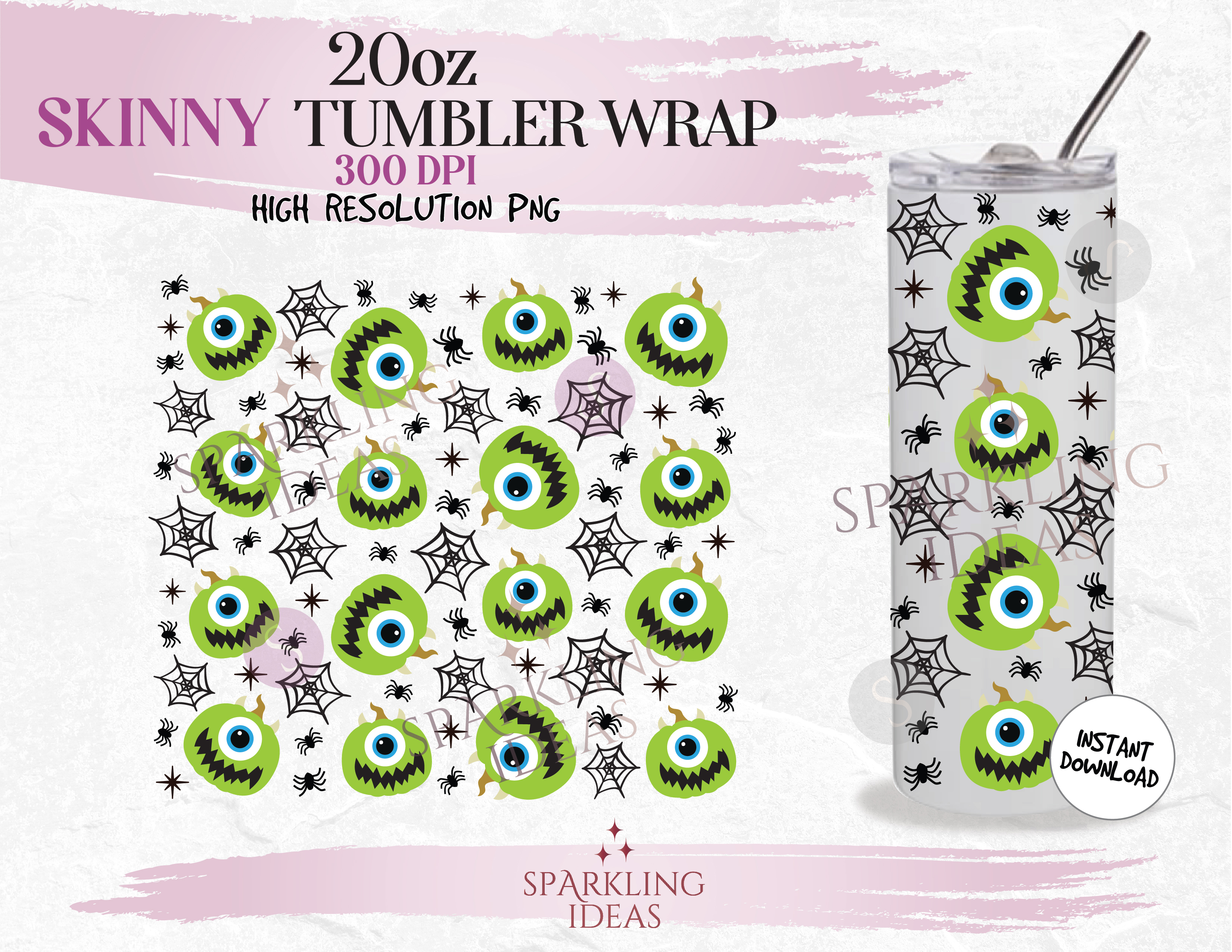 20 oz Skinny Tumbler Mike Pumpkin Halloween Wrap, Monster Inc Halloween Tumbler, Halloween Digital PNG Sublimation
