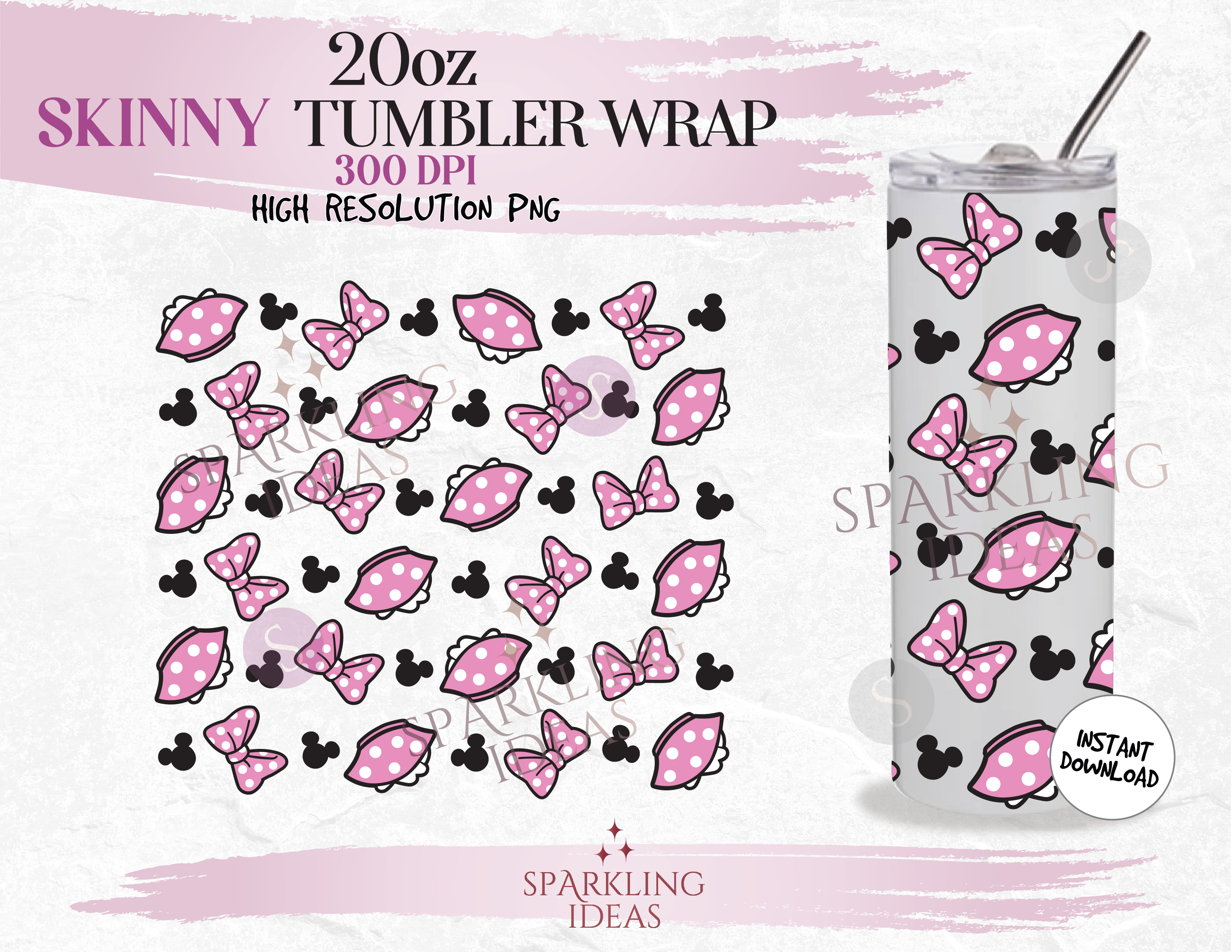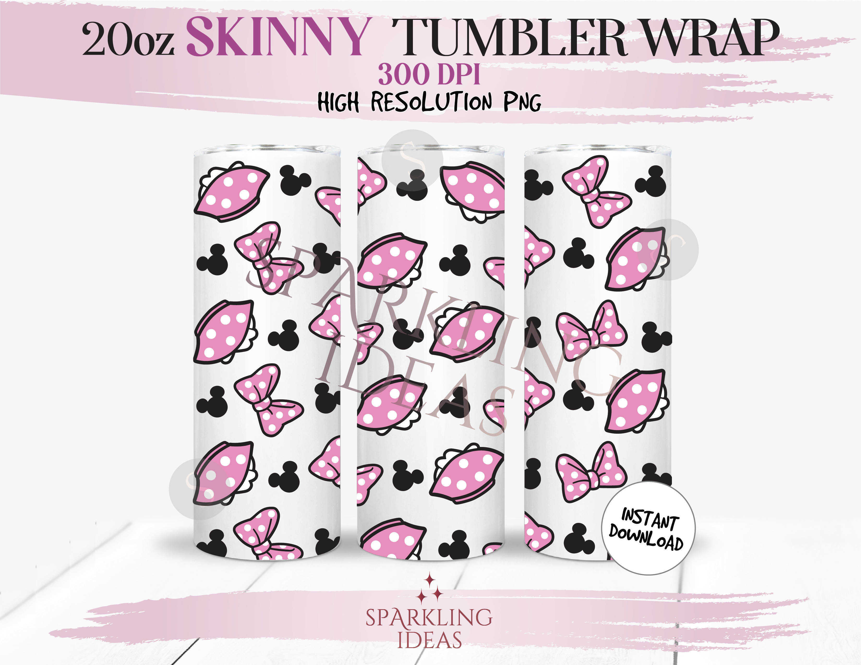 20 oz Skinny Tumbler Minnie Bow Ears Wrap, Magical Place Tumbler, Mouse Dress PNG Sublimation
