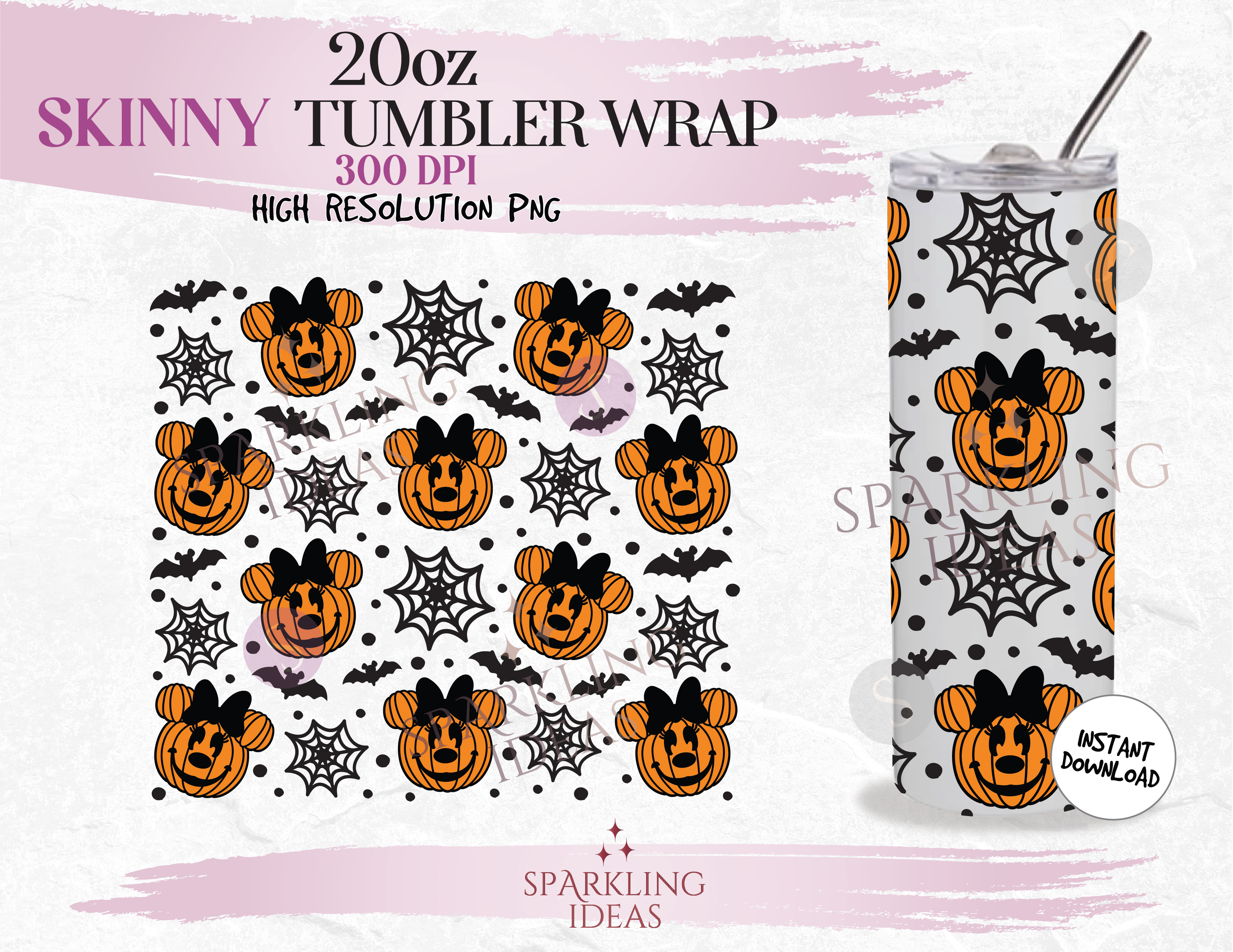 20 oz Skinny Tumbler Minnie Pumkins Wrap, Mouse Halloween Tumbler, Magical Halloween Digital PNG Sublimation