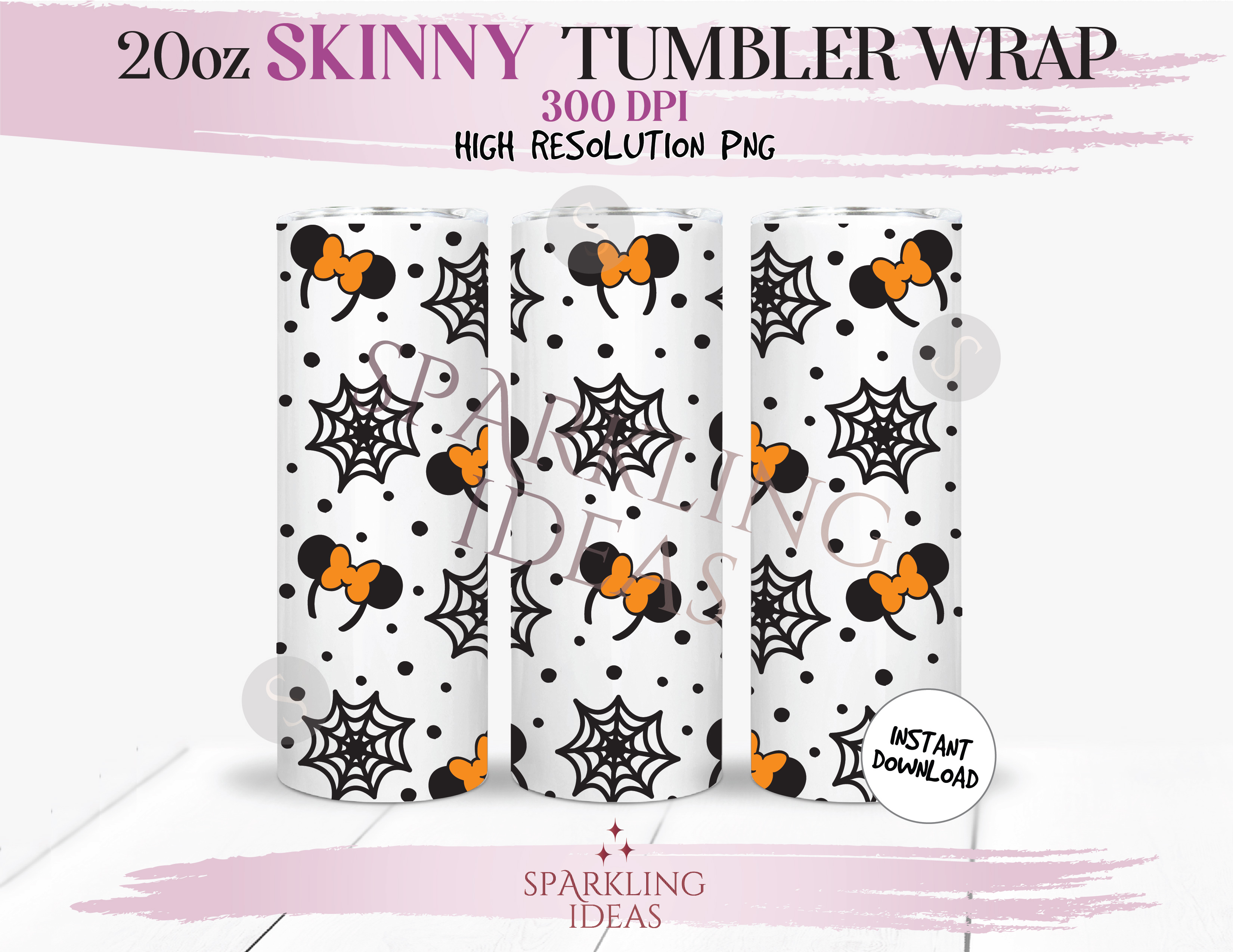20 oz Skinny Tumbler Mouse Headband Ears Halloween Wrap, Mickey Spiderweb Halloween Tumbler, Mouse Ears Halloween Digital png Sublimation