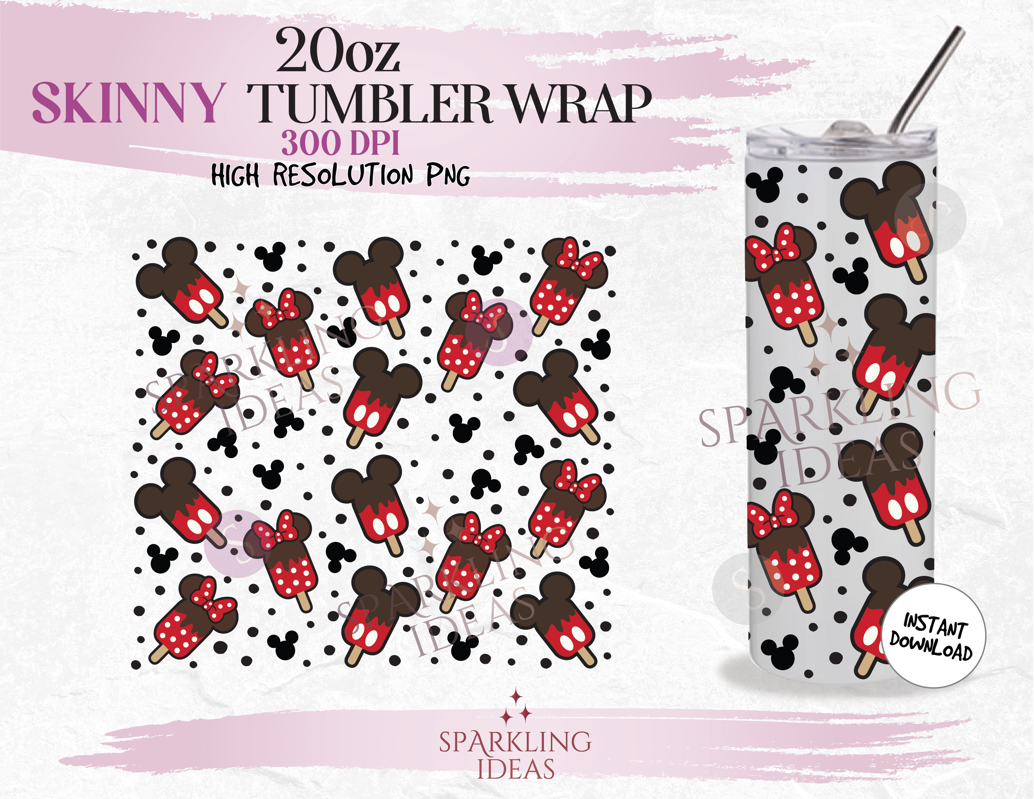 20 oz Skinny Tumbler Mouse Ice Cream Wrap, Magical Place Tumbler, Summer Snack Ears PNG Sublimation