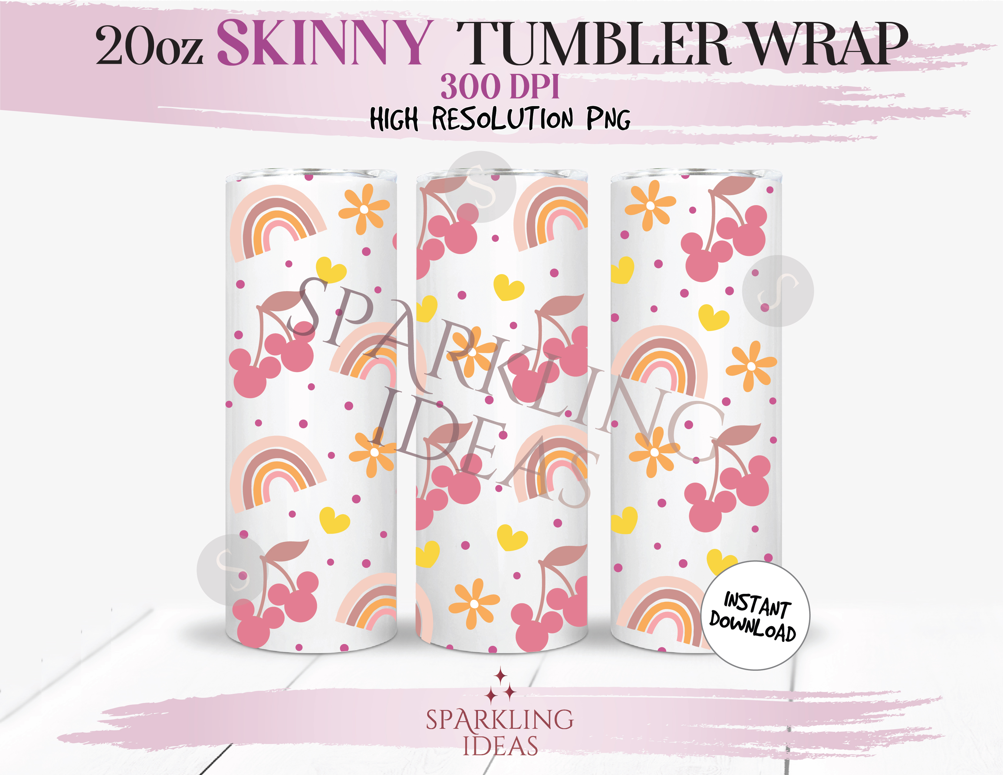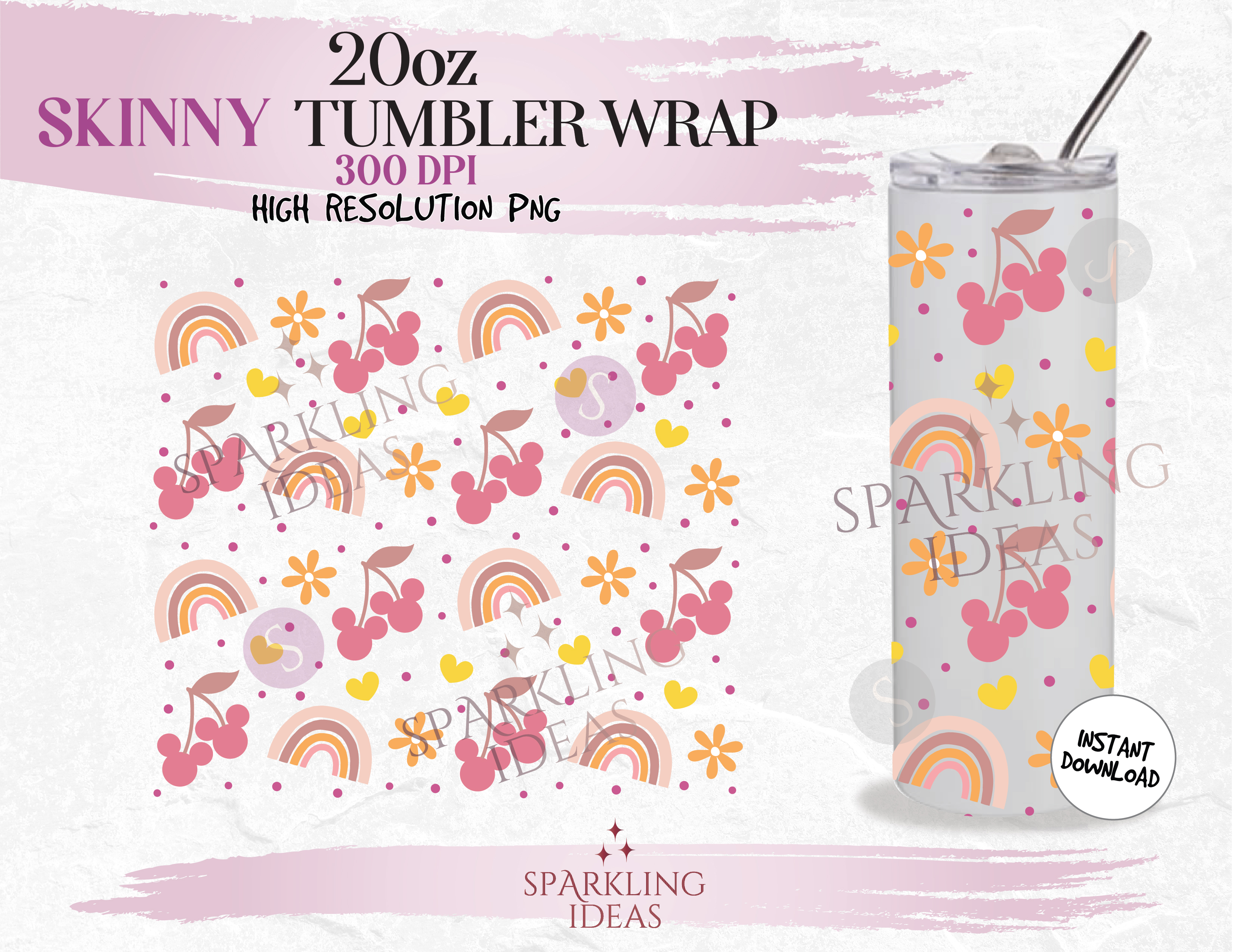 20 oz Skinny Tumbler Mouse Rainbow Wrap, Mickey Cherry Tumbler, Magical World Digital PNG Sublimation