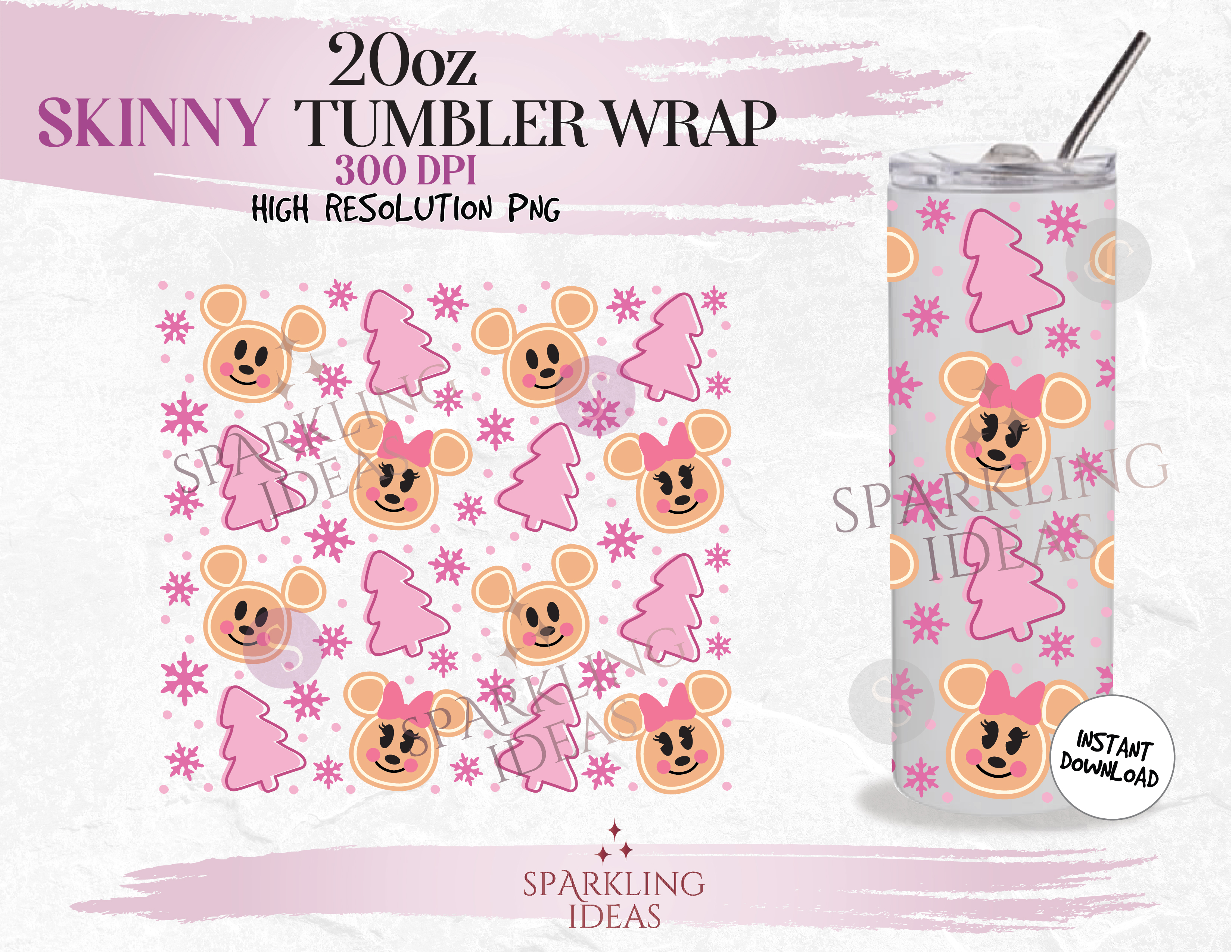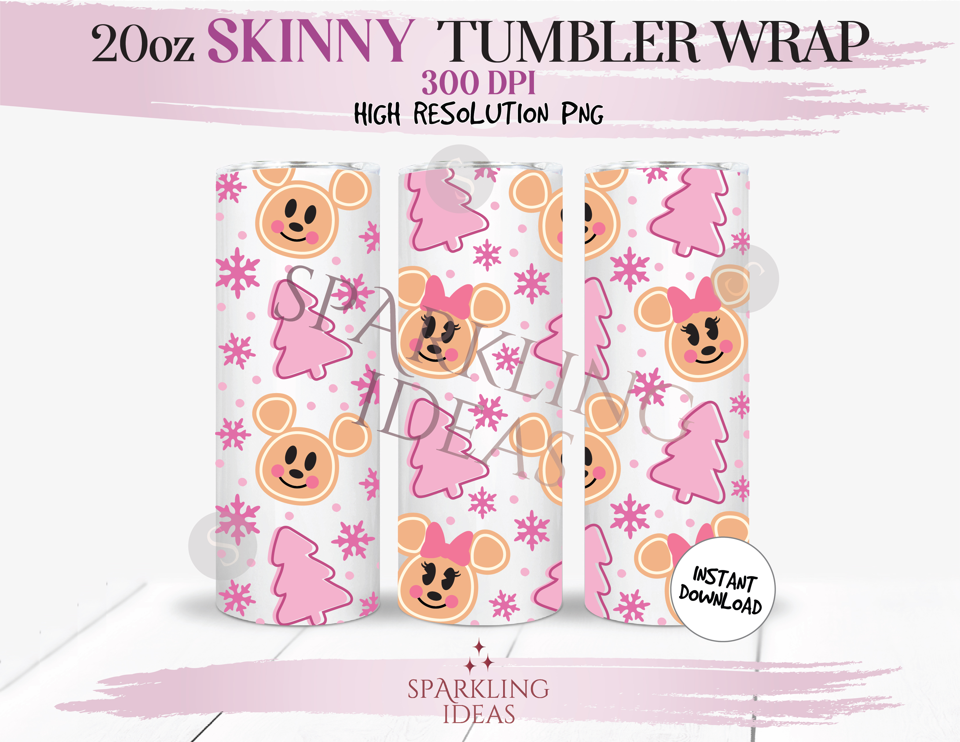 20 oz Skinny Tumbler Pink Gingerbread Mouse Wrap, Pink Christmas Tumbler, Magical Christmas Inspired Digital PNG Sublimation