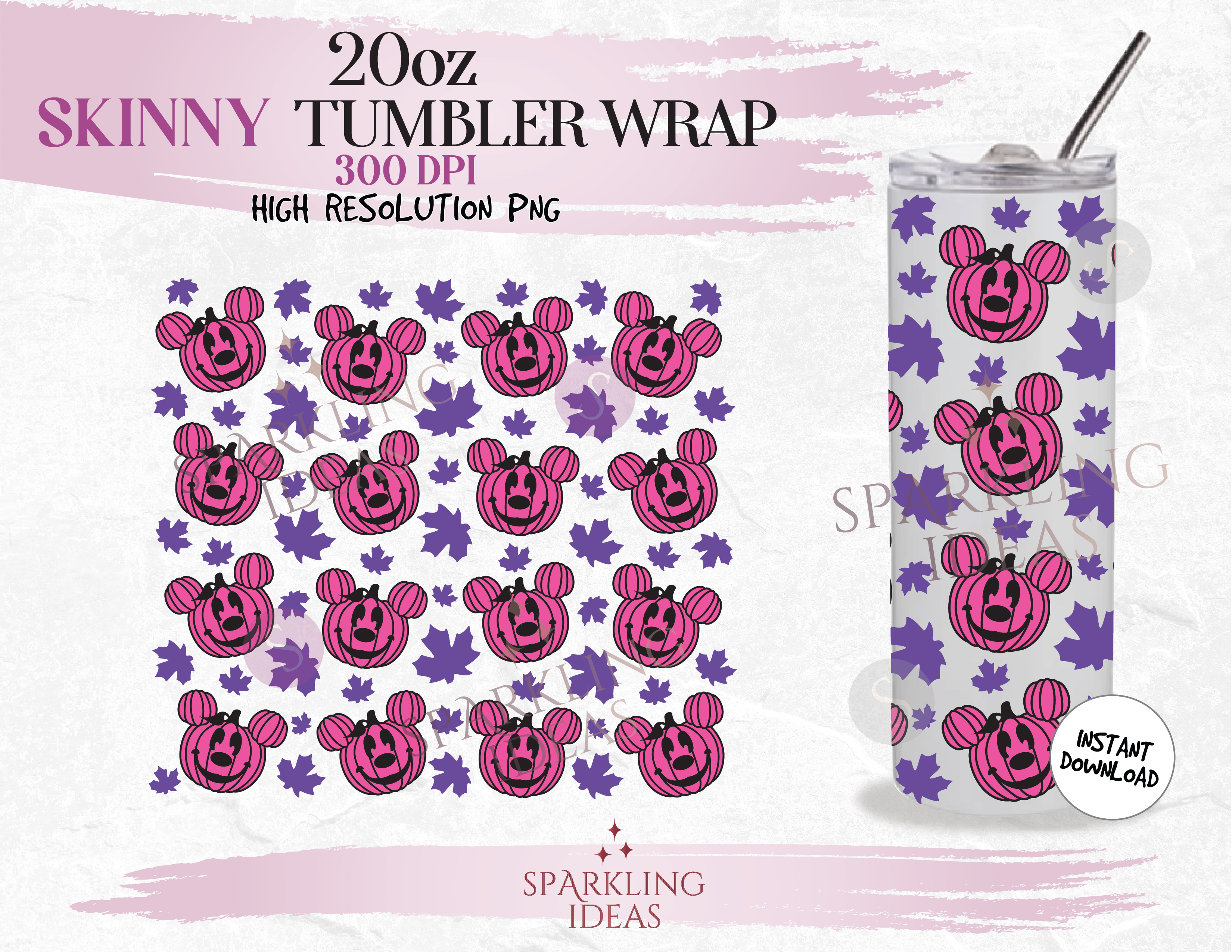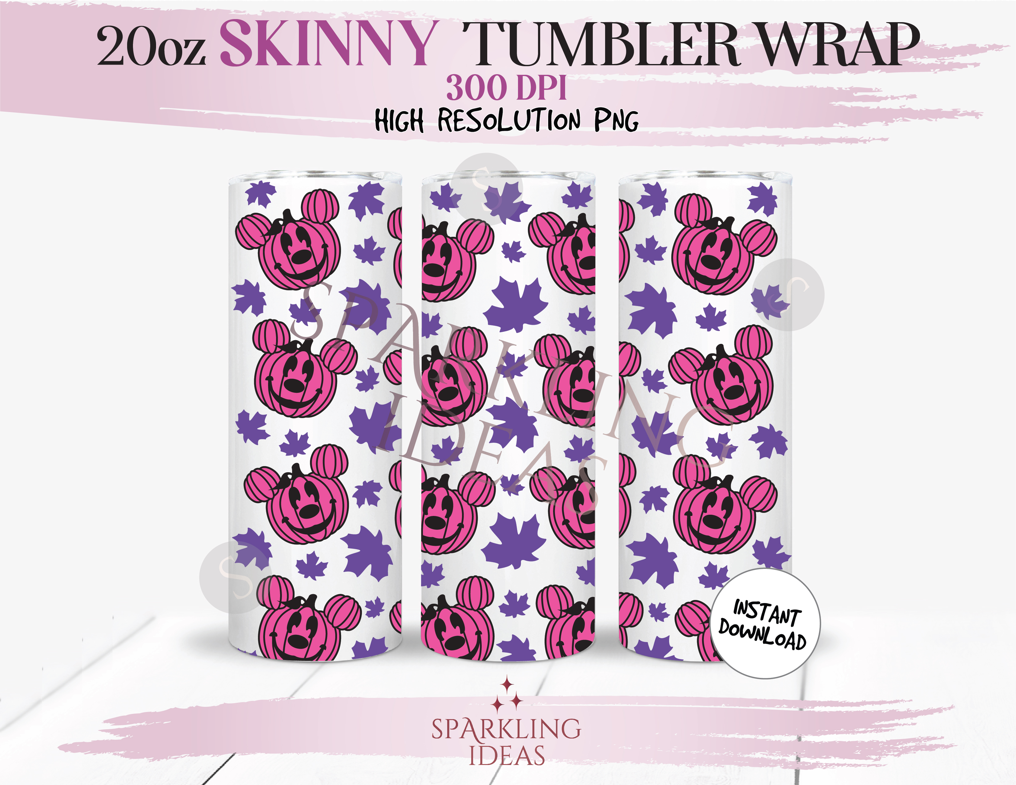 20 oz Skinny Tumbler Pink Mickey Pumpkins Wrap, Mickey Fall Tumbler, Fall Leaves Digital PNG Sublimation