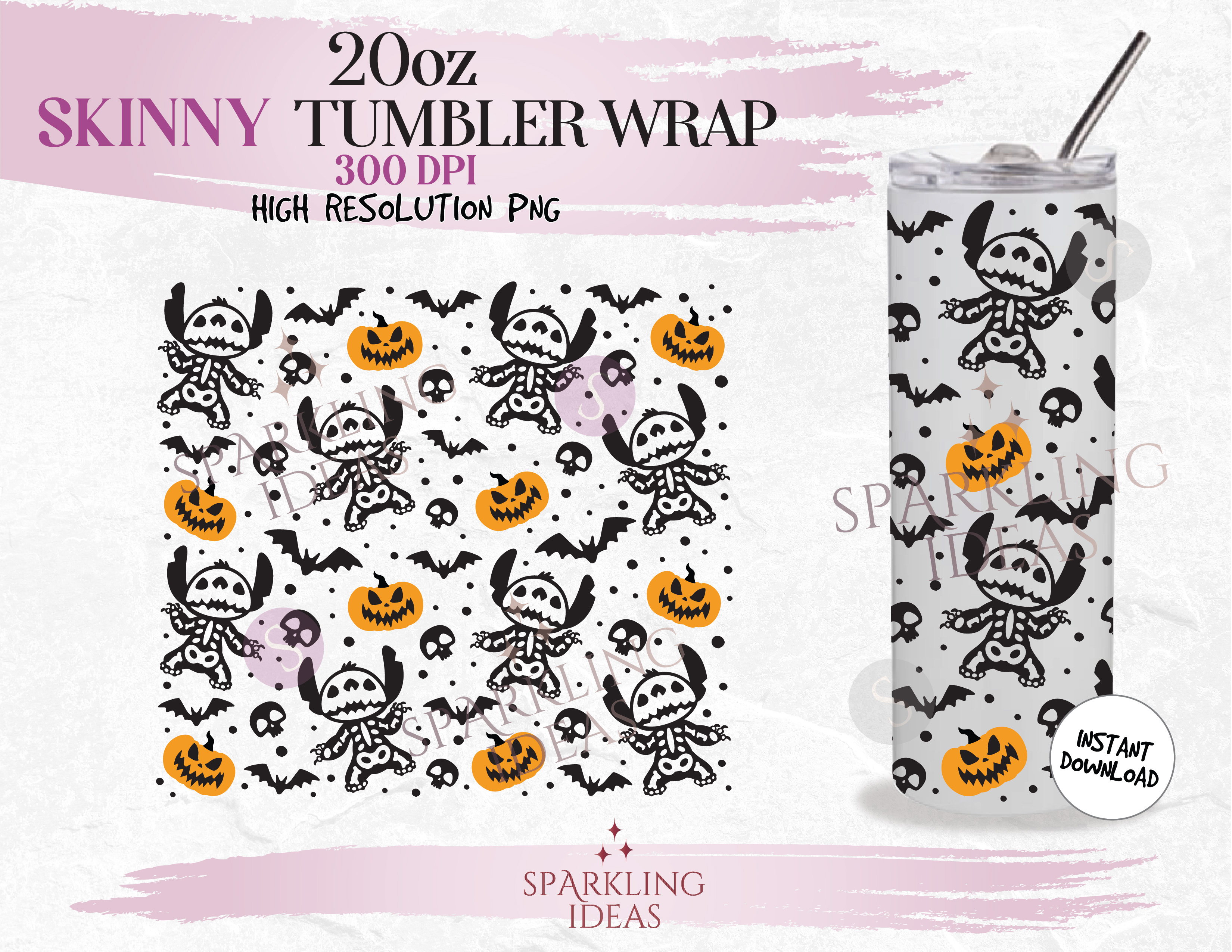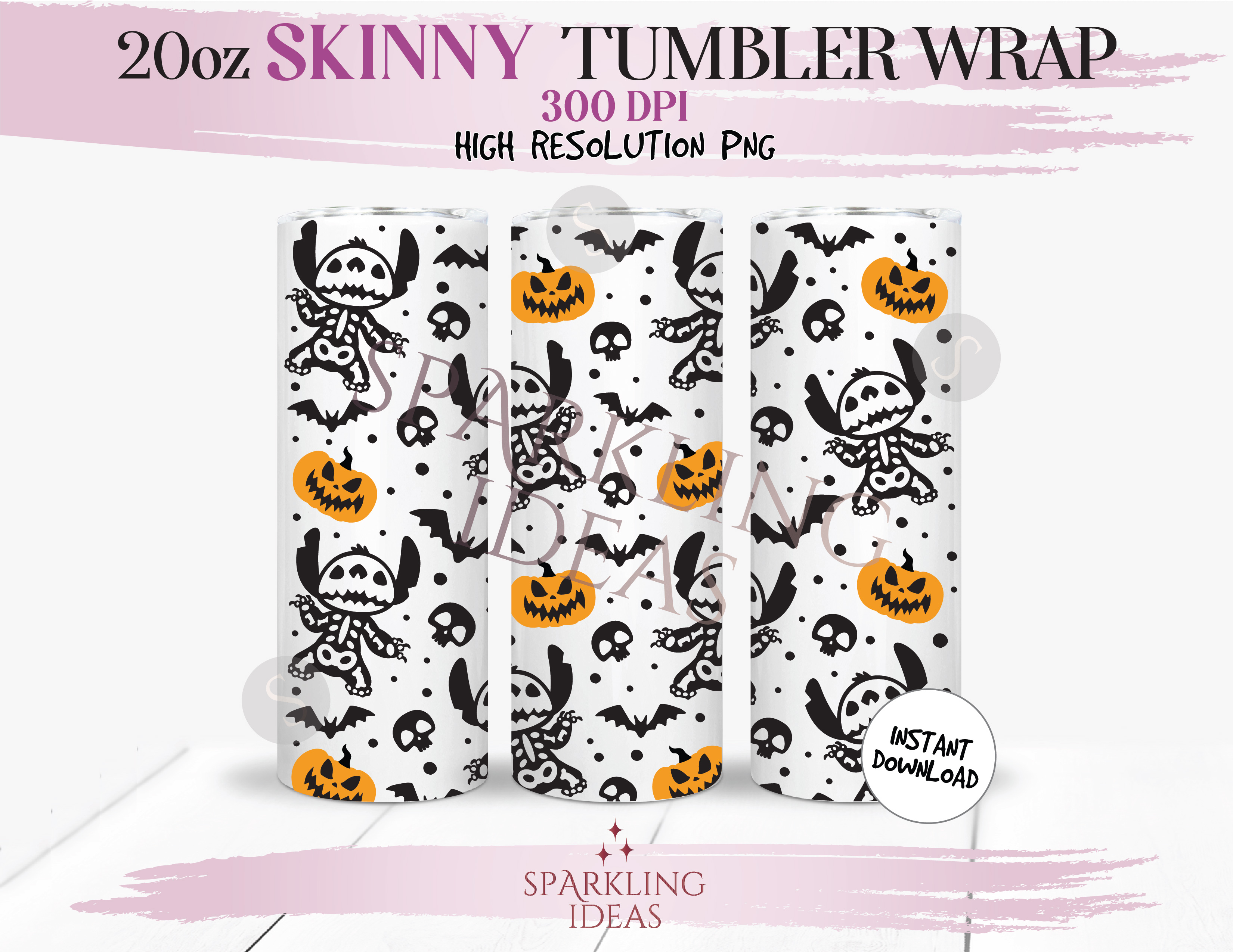 20 oz Skinny Tumbler Skeleton Stitch Wrap, Spooky Stitch Tumbler png, Stitch Halloween Digital png Sublimation