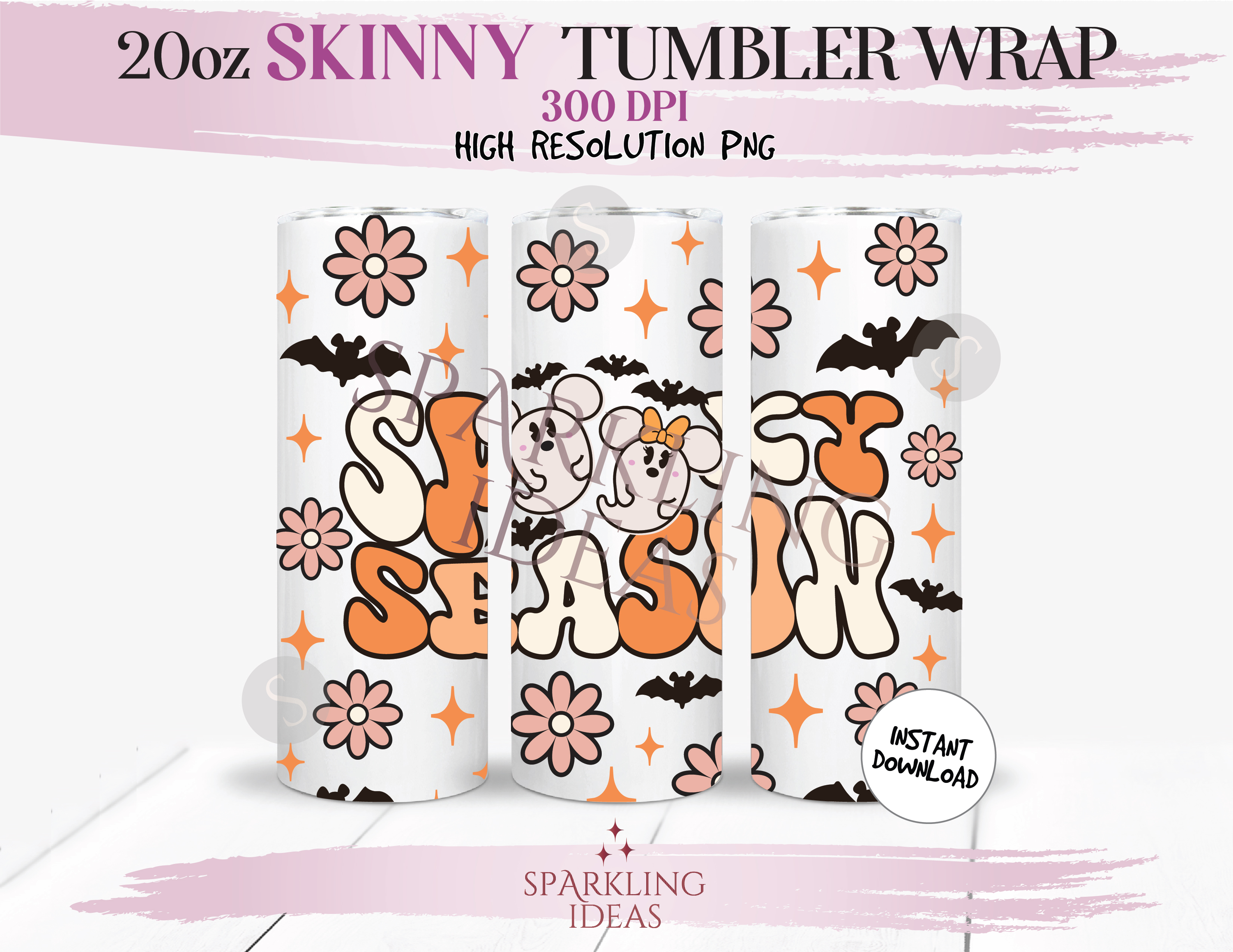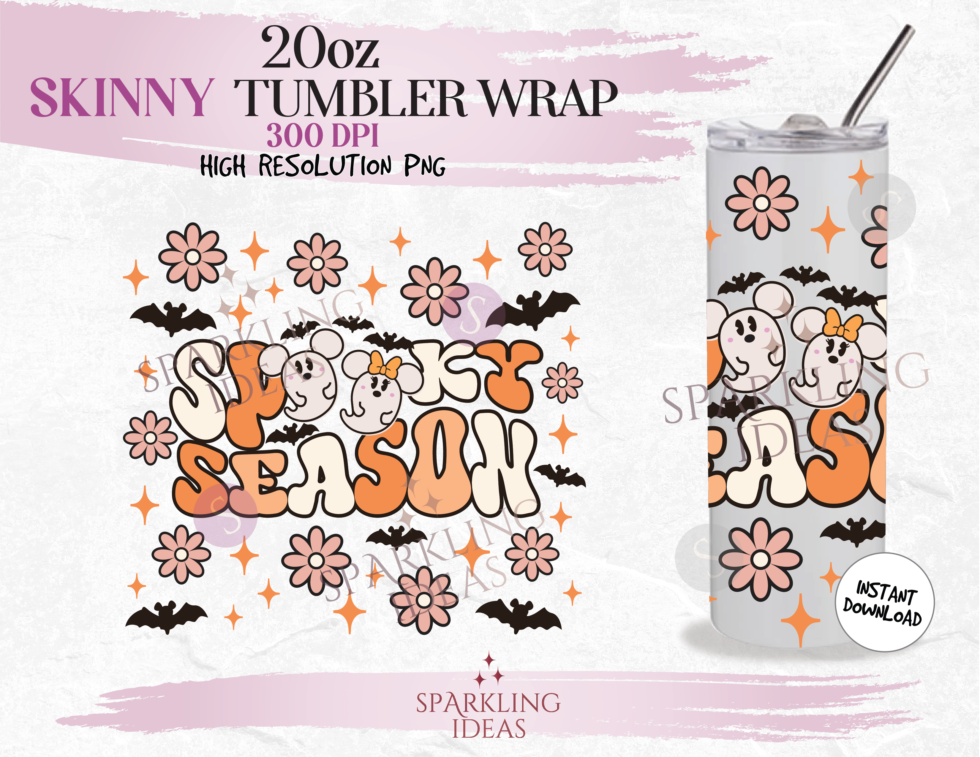 20 oz Skinny Tumbler Spooky Season Wrap, Mouse Ghosts Tumbler, Retro Mickey Halloween Digital PNG Sublimation