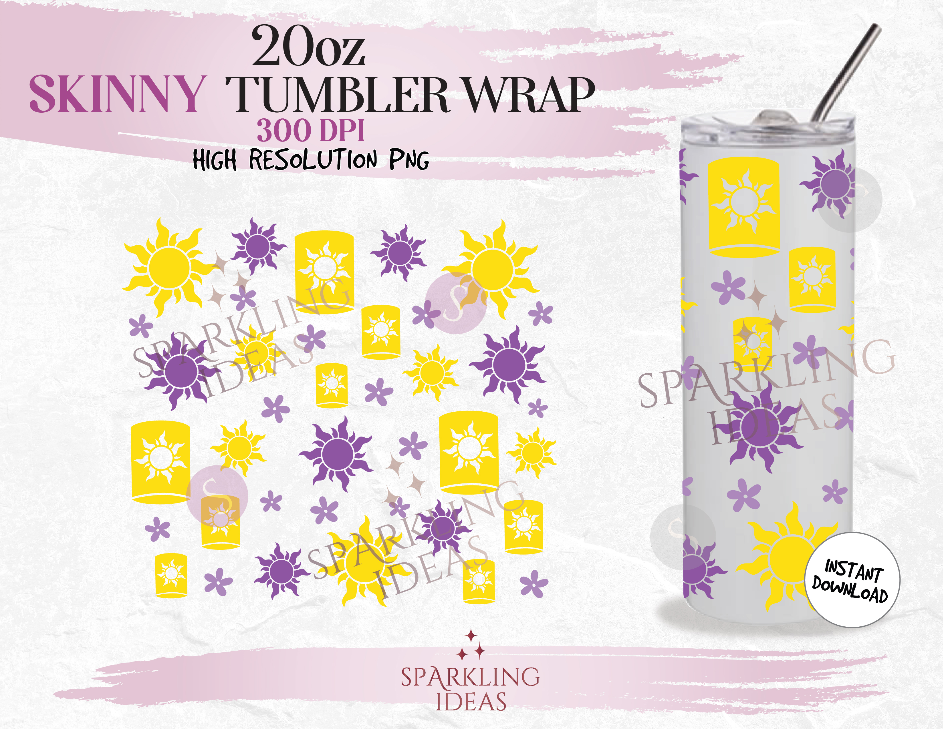 20 oz Skinny Tumbler Tangled Sun Wrap, Tangled Lantern Tumbler, Magical World Digital PNG Sublimation