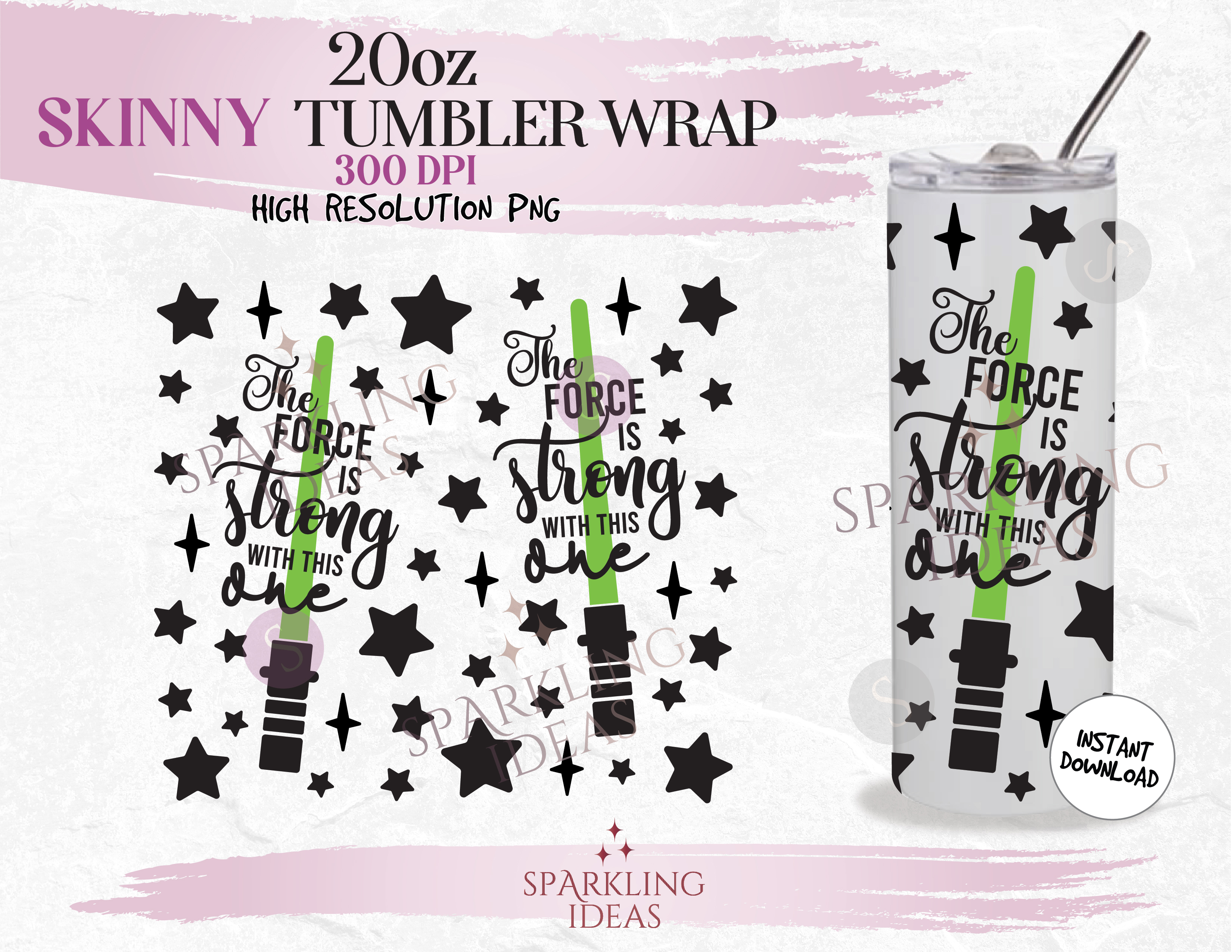 20 oz Skinny Tumbler The force is Strong with this one Wrap, Lightsaber Tumbler, Star Wars Digital PNG Sublimation