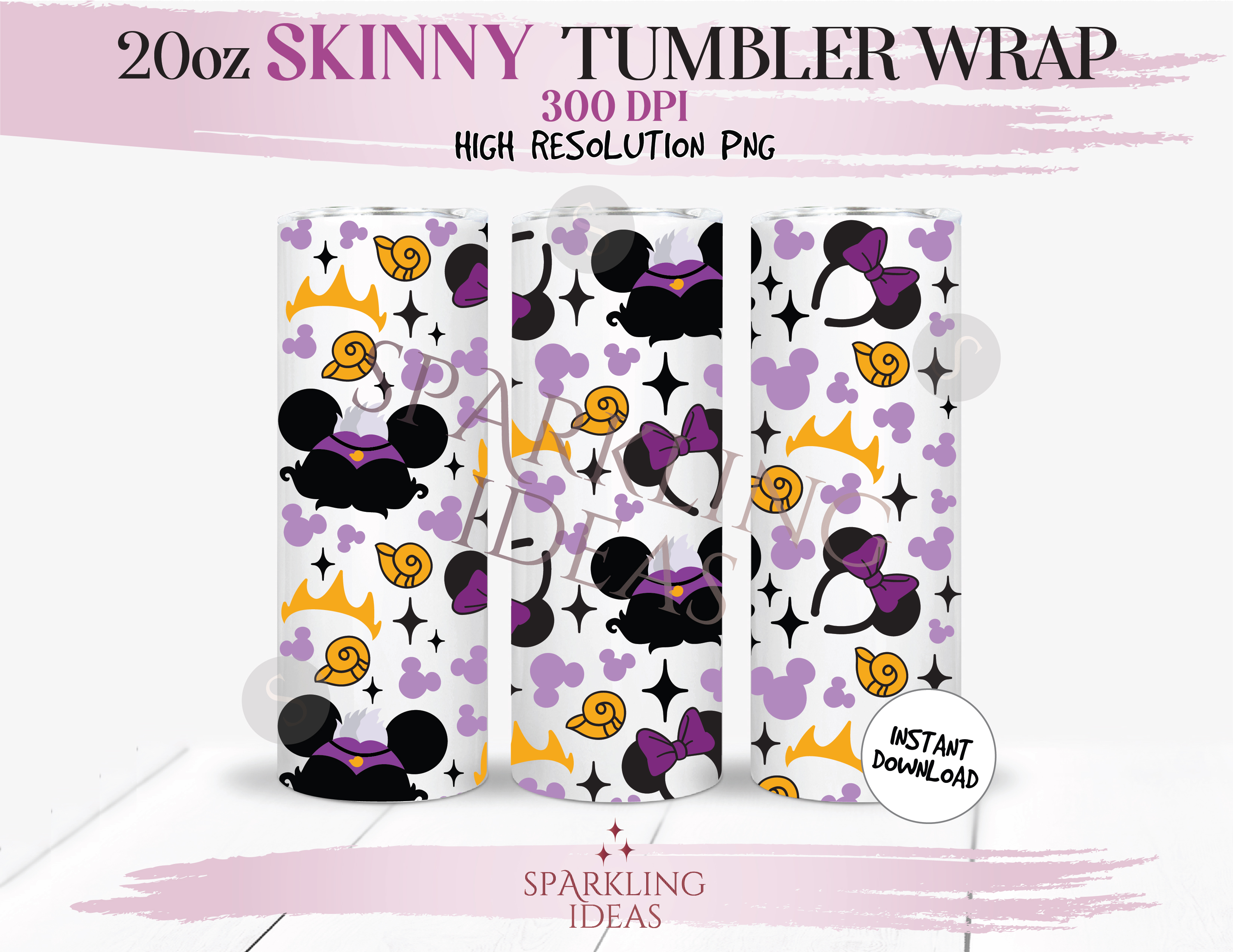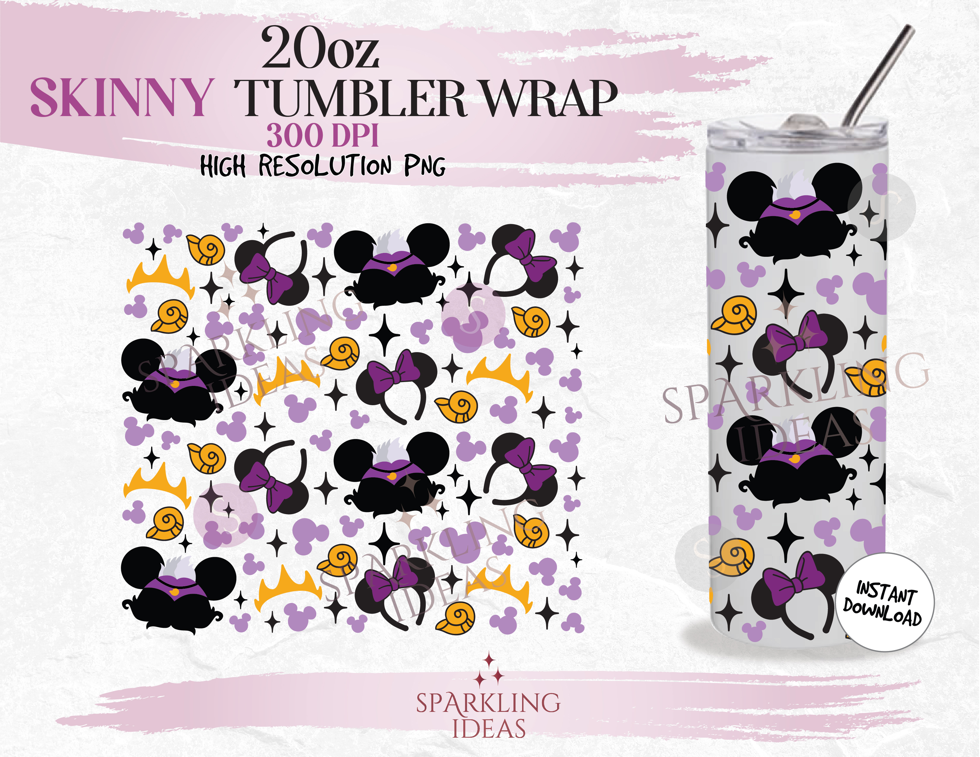 20 oz Skinny Tumbler Ursula Ears Wrap, Villains Ears Hat Inspired Tumbler, Magical Ears Digital PNG Sublimation