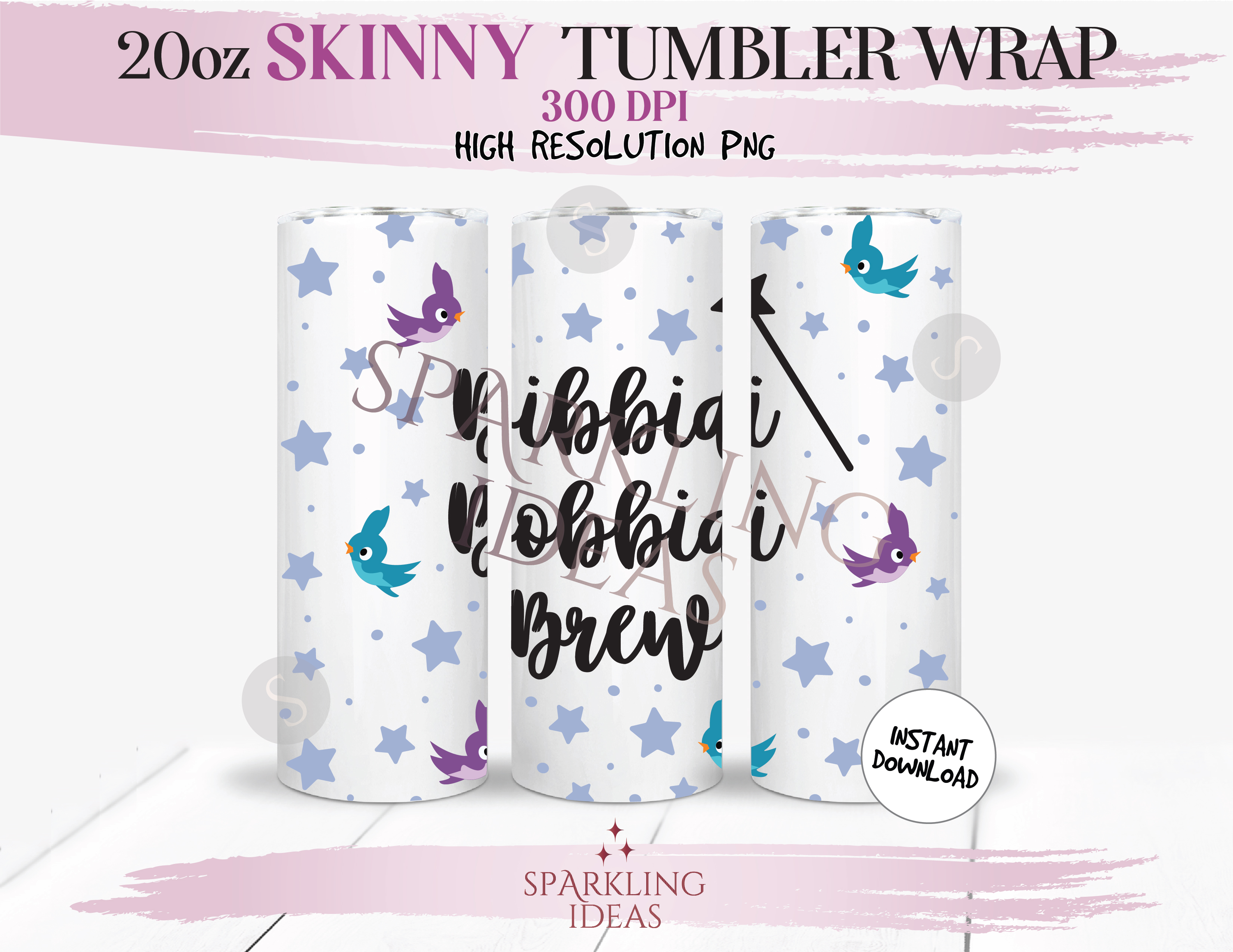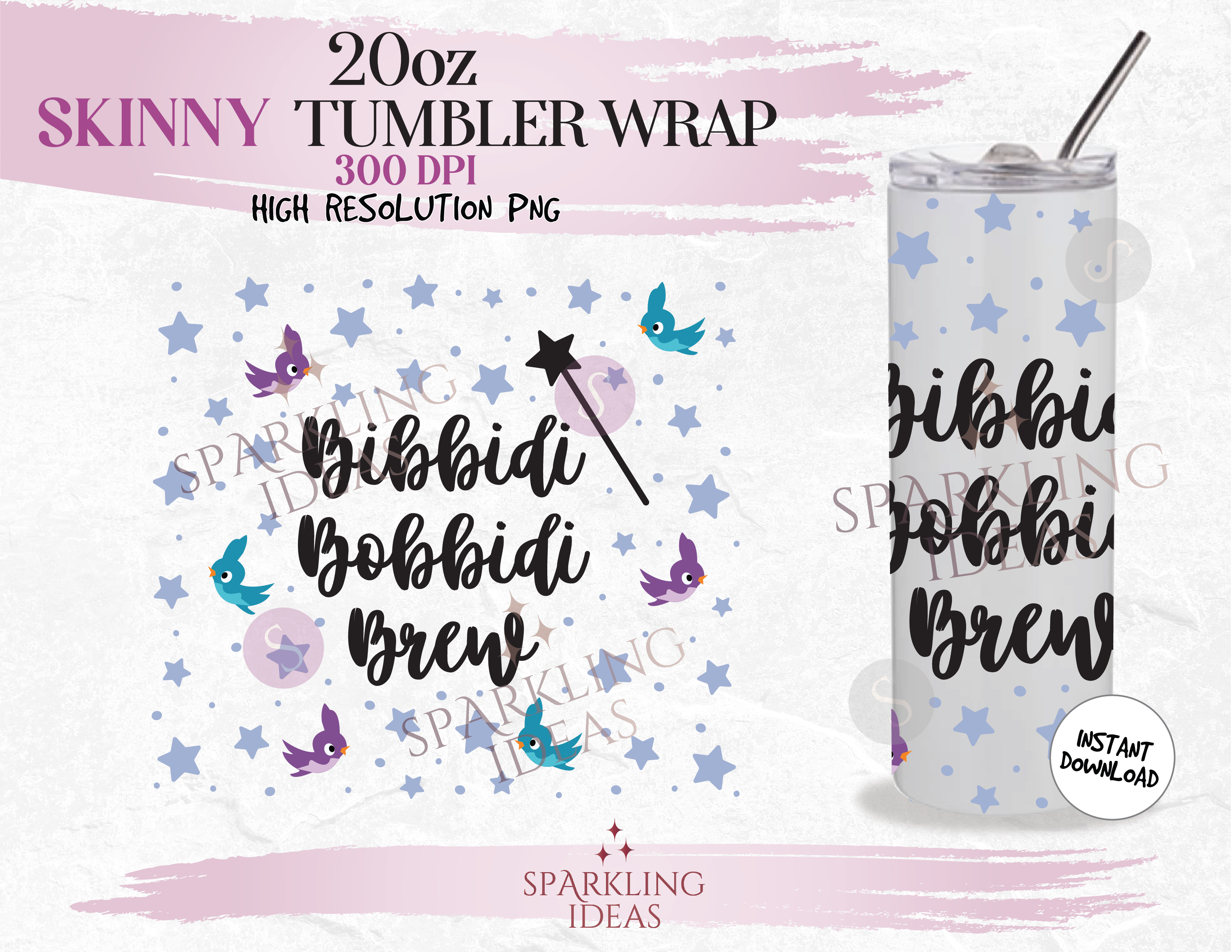 20 oz Skinny Tumbler Bibbidi Bobbidi Brew Wrap, Fairy Wish Tumbler, Magical World Digital PNG Sublimation