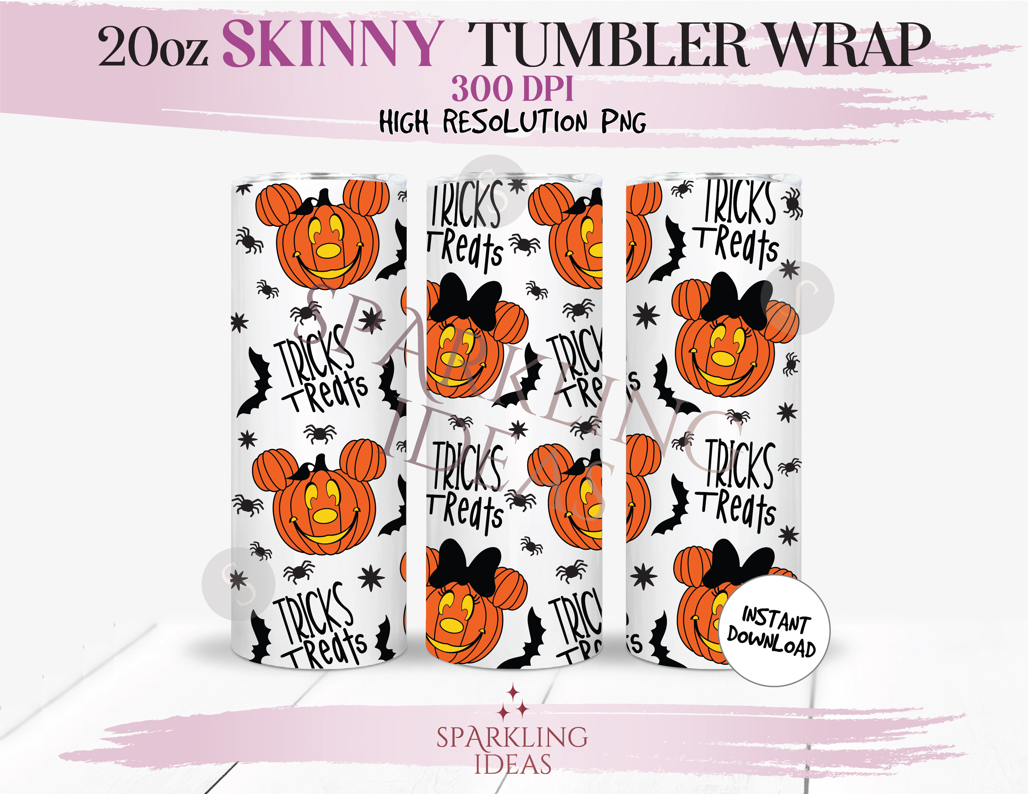 20 oz Skinny Tumbler Treat and Treats Pumpkins Wrap, Mickey Halloween Tumbler, Magical Halloween Digital PNG Sublimation