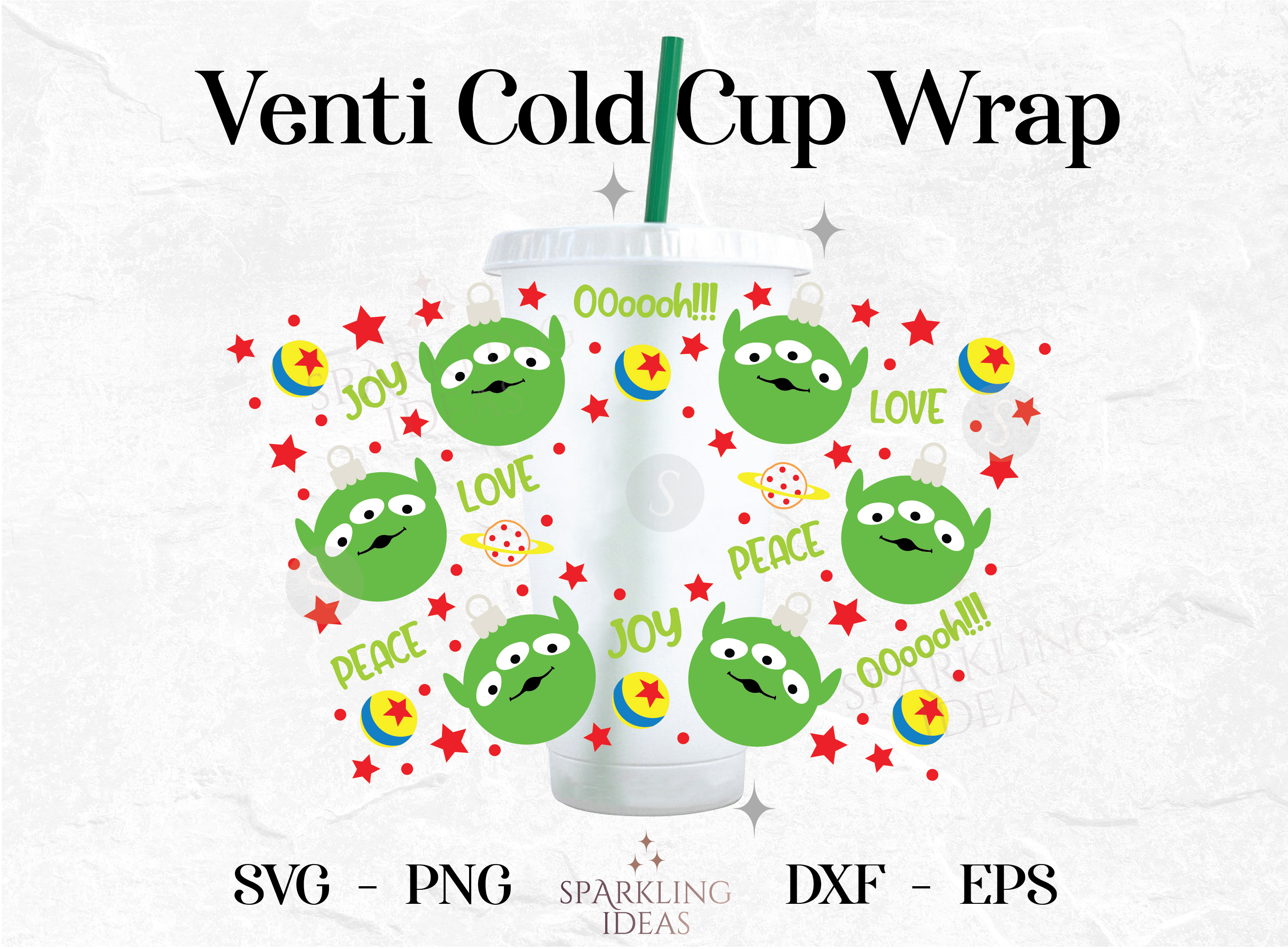 Alien Christmas Wrap For Cold Cups 24oz SVG, Pizza Planet Cold Cup Svg, Holiday Christmas Wrap Svg, Aliens Svg, Out of this world Svg