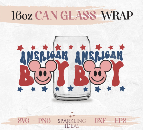 American Boy Mickey Ears Can Glass SVG 16oz, Retro American Boy Wrap Svg, Groovy American Cup Wrap, 4th of July Svg, Vintage Groovy American