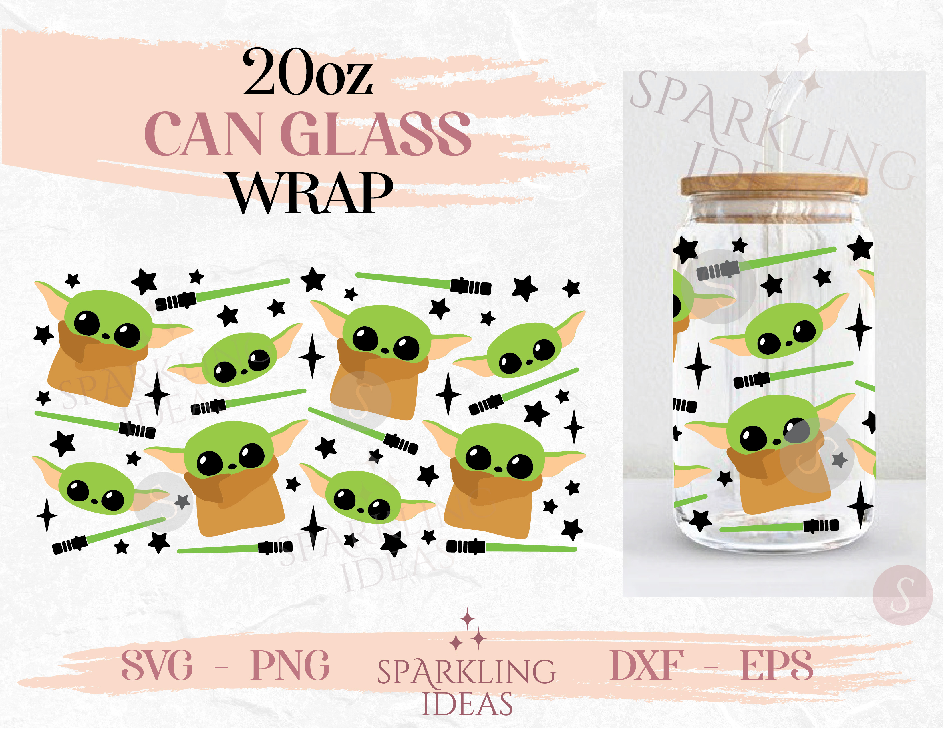 Baby Yoda Can glass SVG 20oz, Lightsaber Jedi Glass Svg, Mandalorian Wrap Svg