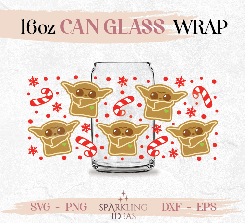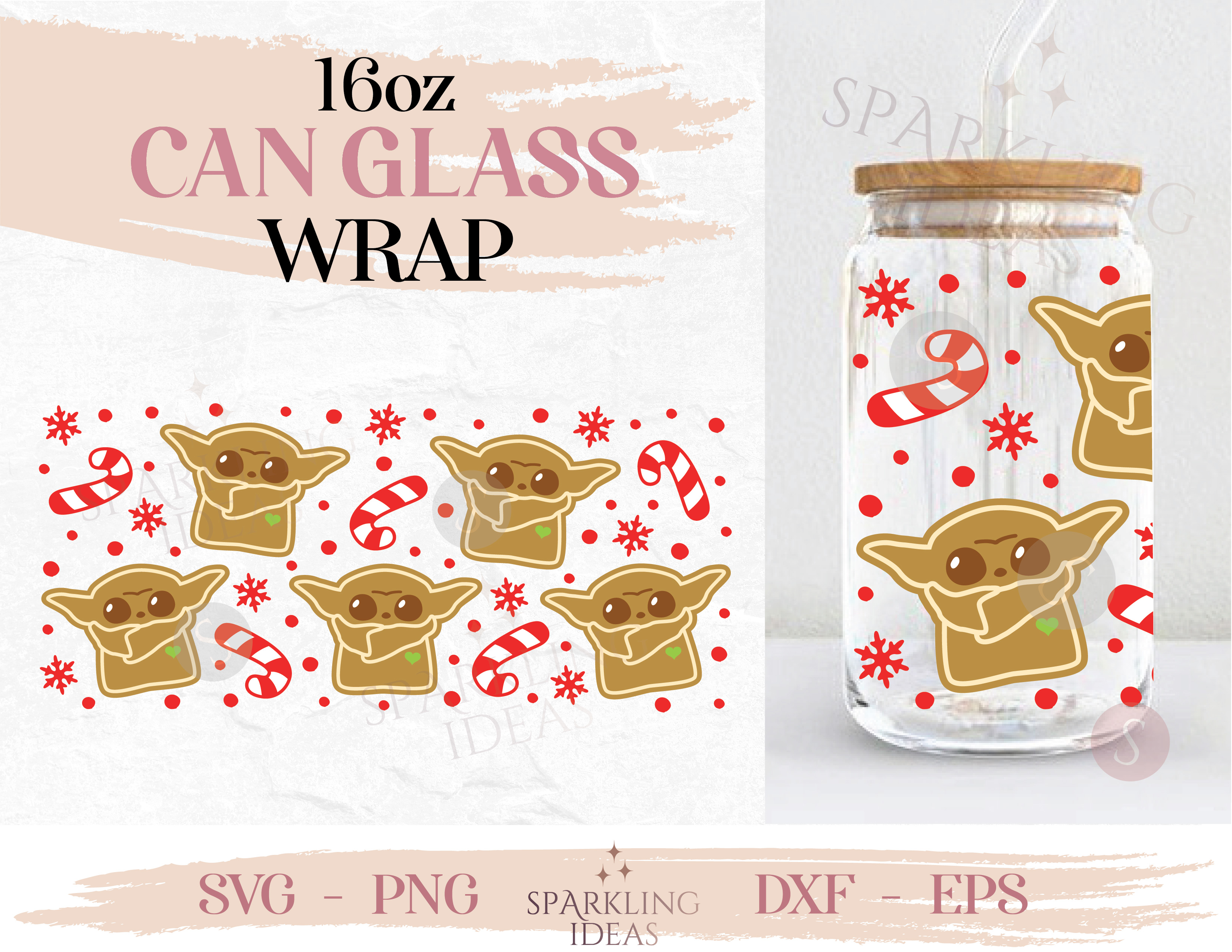 Baby Yoda Can glass wrap SVG 16oz, Christmas Cookies Can glass wrap, Star Wars Wrap Svg, Mandalorian Wrap Svg, Gingerbread Cookie Svg