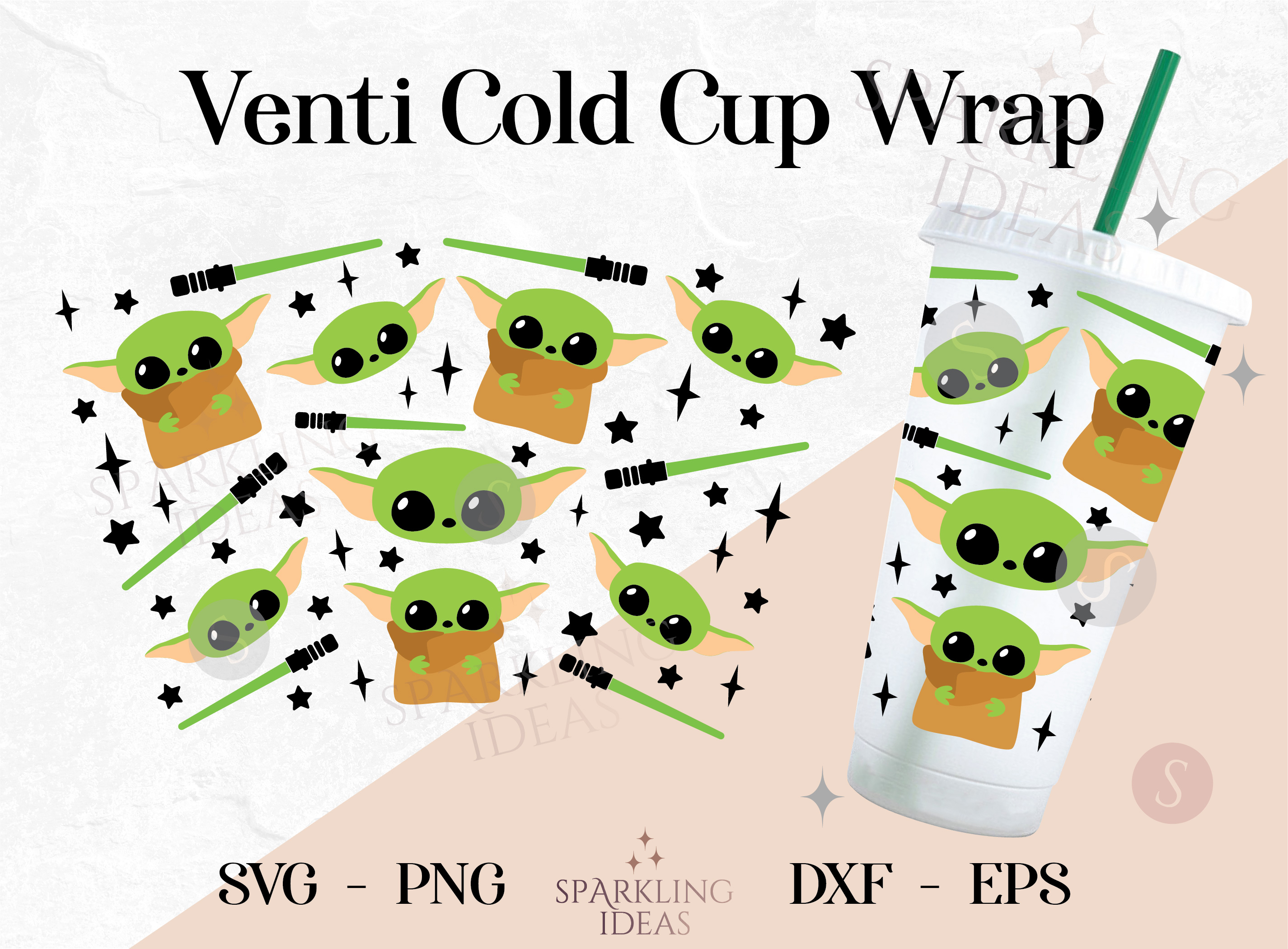 Baby Yoda Venti Cup 24oz Wrap No Hole, Lightsaber Cold Cup Svg, Jedi Star Wars Wrap Svg