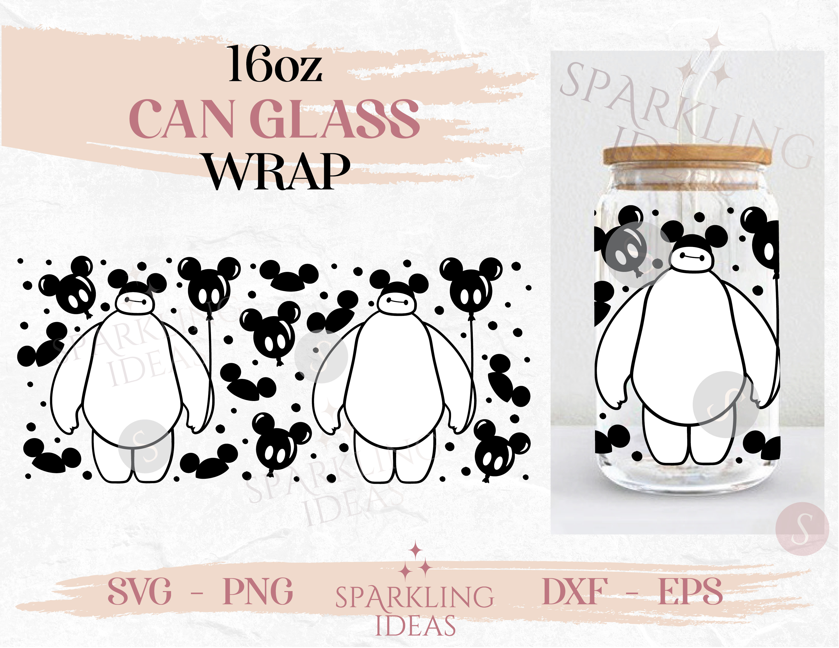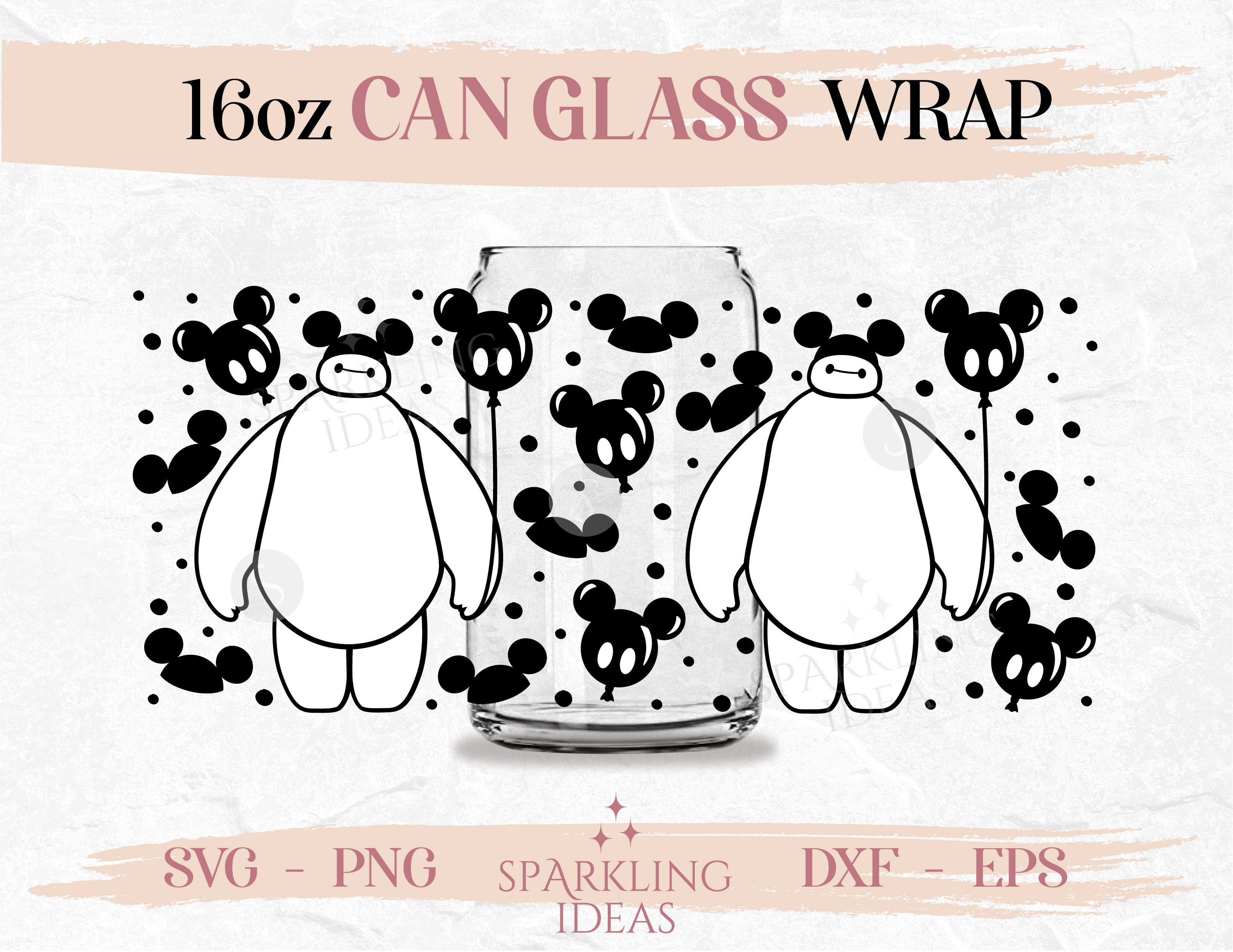 Baymax Mickey Balloon Libbey Can glass SVG 16oz, Big Hero Glass Svg, Balalala Robot Wrap Svg