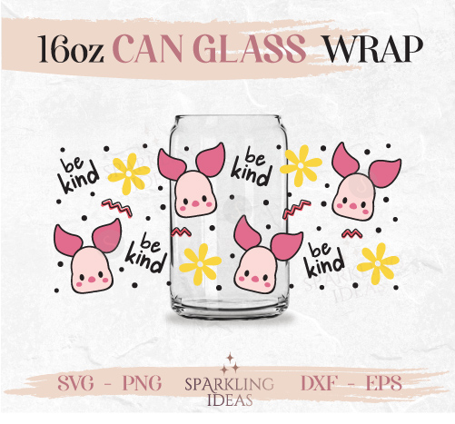 Be Kind Can glass SVG 16oz, Piglet Pooh Friends Glass Svg, Piglet Inspired Wrap Svg, Honey Bear Inspired Wrap Svg