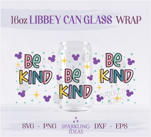 Be Kind Libbey 16oz Glass SVG, Magical Ears Libbey Glass Svg, Mickey Ears Wrap Svg