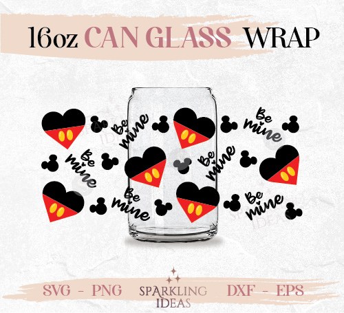 Be Mine Mouse Ears Can glass wrap SVG 16oz, Magic Kingdom Love Glass Svg, Mickey Heart Valentines Wrap Svg, Mouse Valentine’s day svg