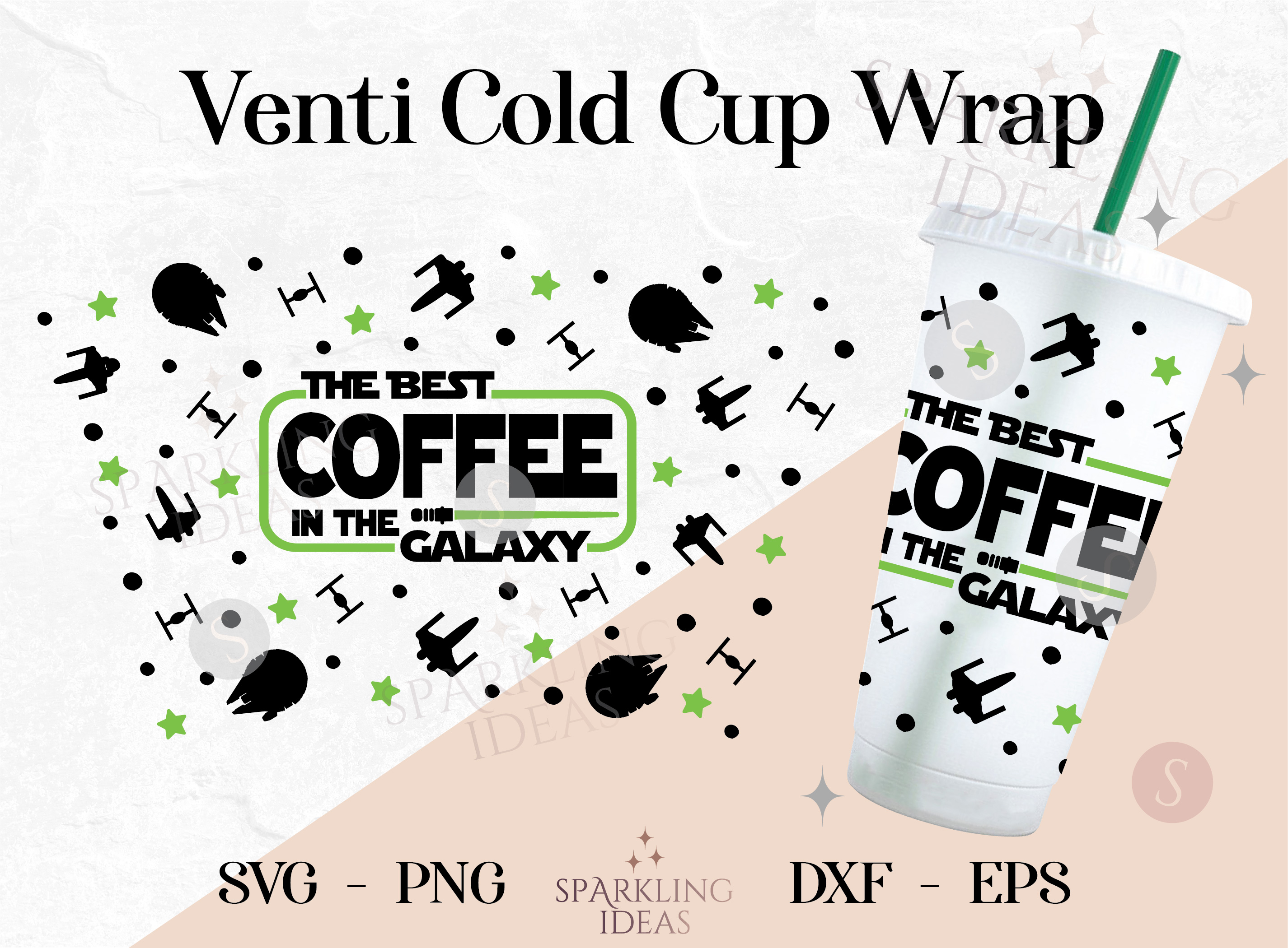 Best Coffee in the Galaxy Venti Cup 24oz Wrap No Hole, Lightsaber Cold Cup Svg, Galaxy Ships Cold Cup Wrap Svg, Jedi Death Star Wrap Svg