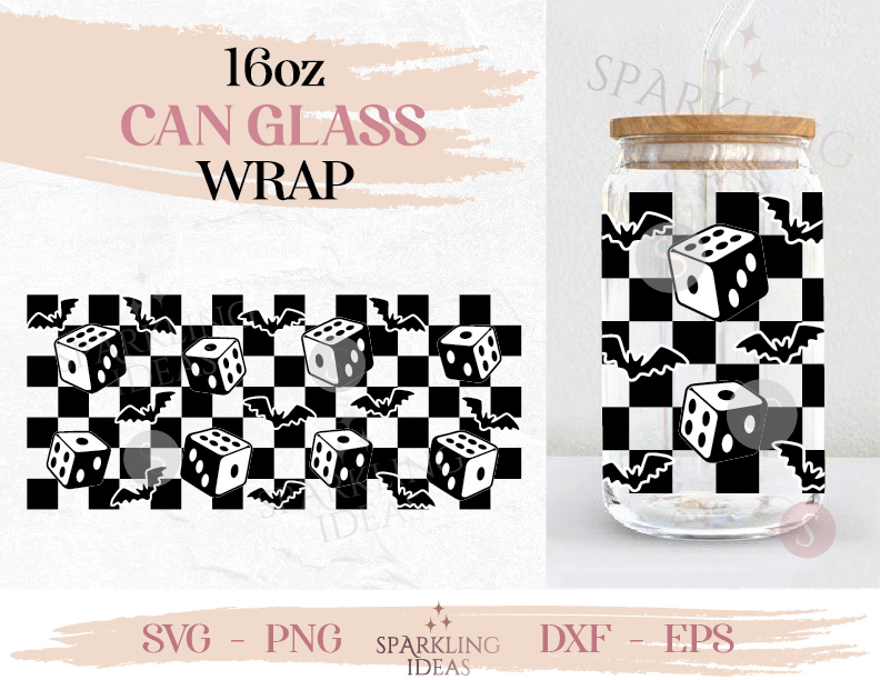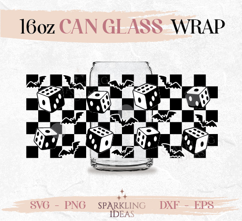 Checkered Dice Can glass SVG 16oz, Oogie Boogie Halloween Movie Glass Svg, Spooky Halloween Jack Wrap Svg