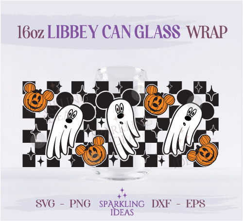 Checkered Mickey Ghost Halloween Can Glass 16oz SVG, Mickey Halloween Coffee Cup Svg, Ghost Halloween Mouse Wrap svg
