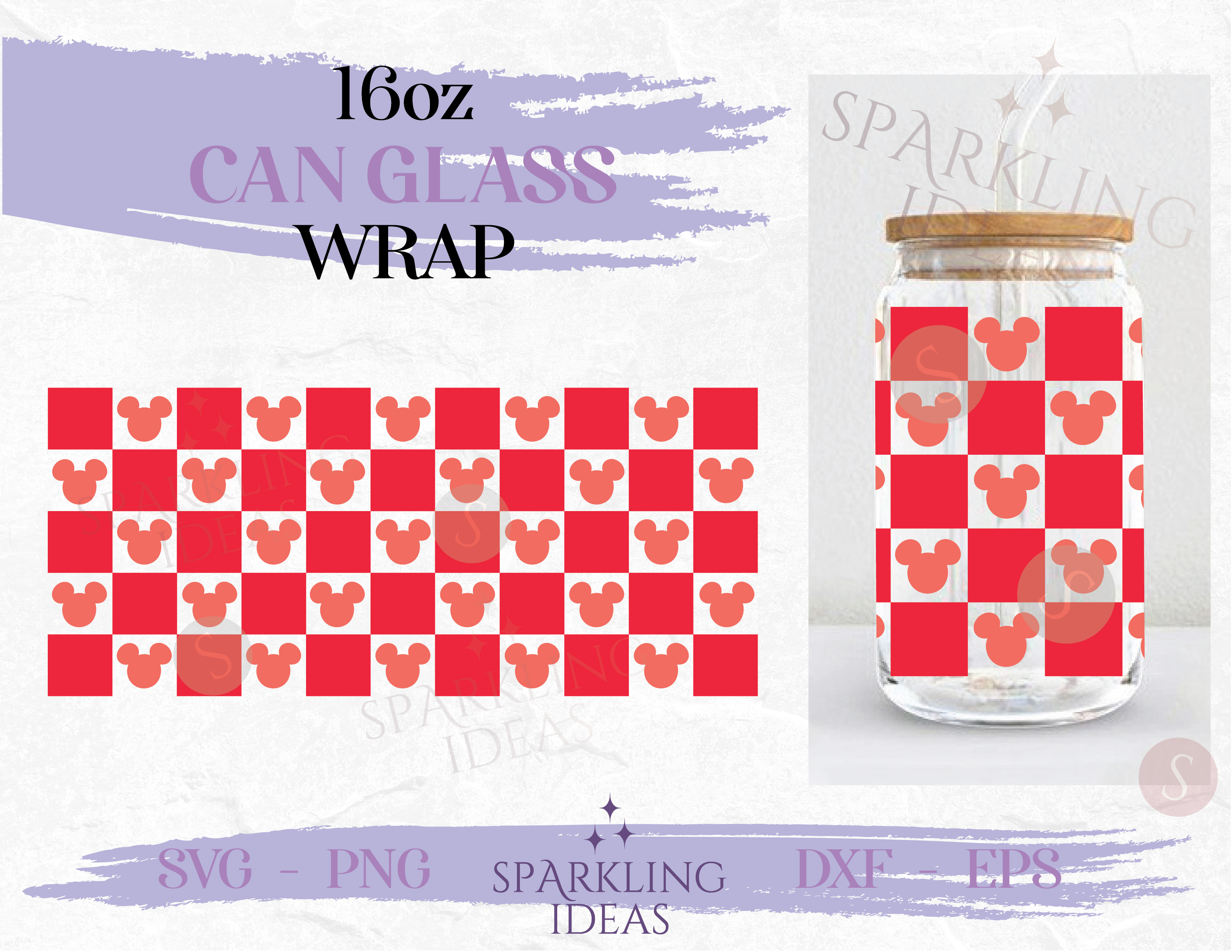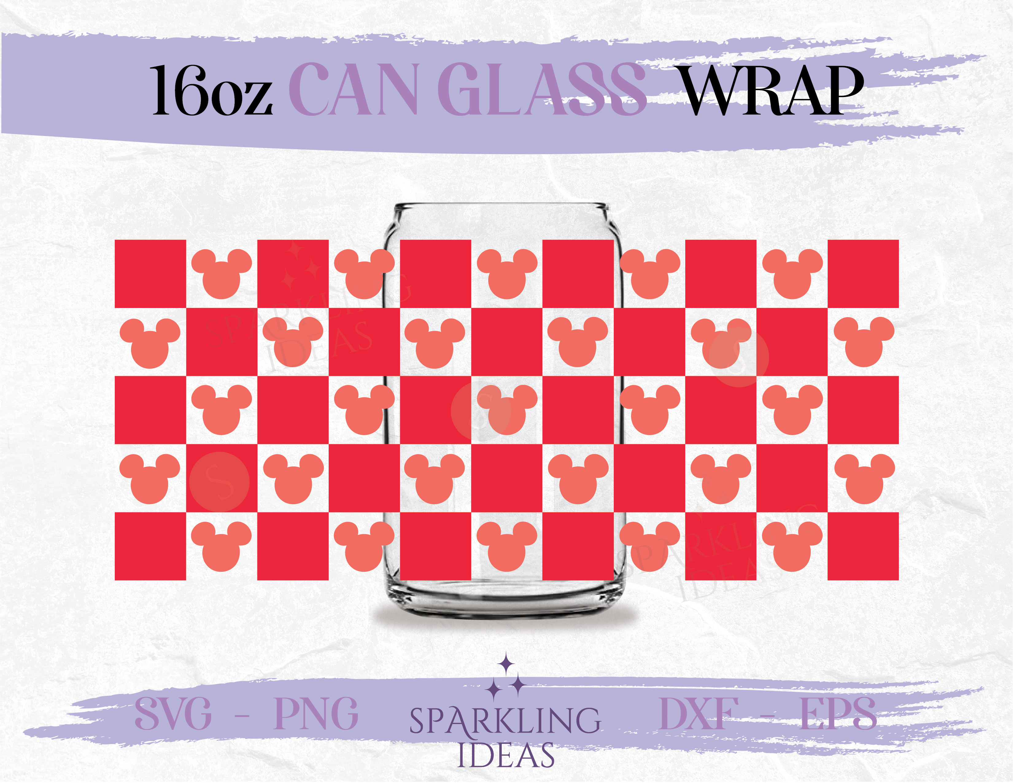 Checkered Mouse Ears LIBBEY Can glass Svg 16oz, Disney Lover Wrap Svg, Mouse Head Ears Wrap Svg