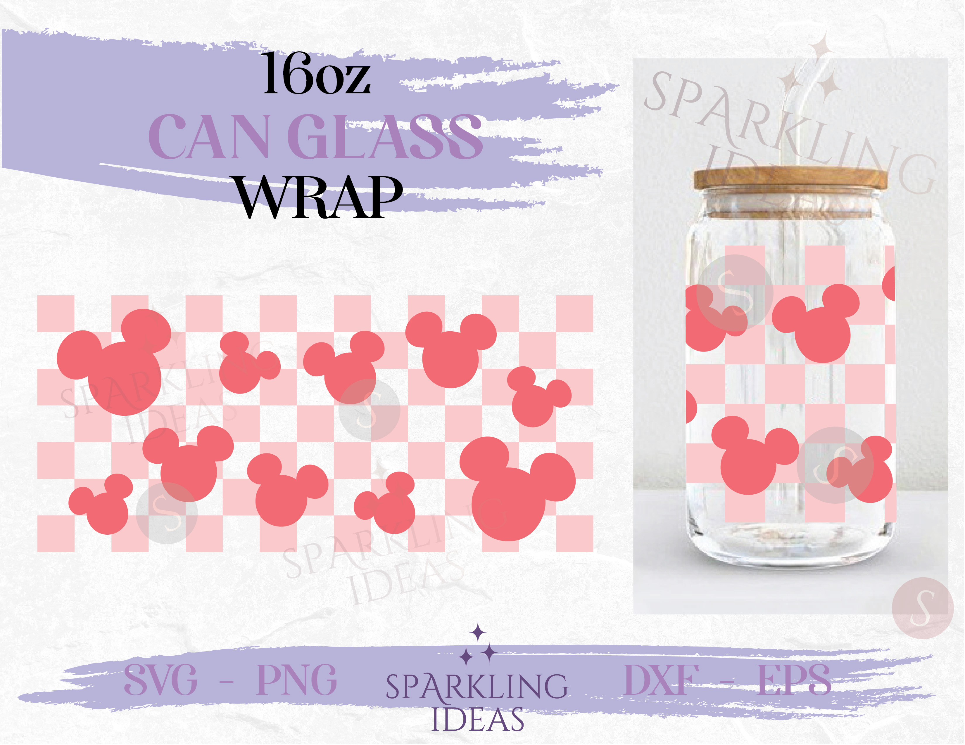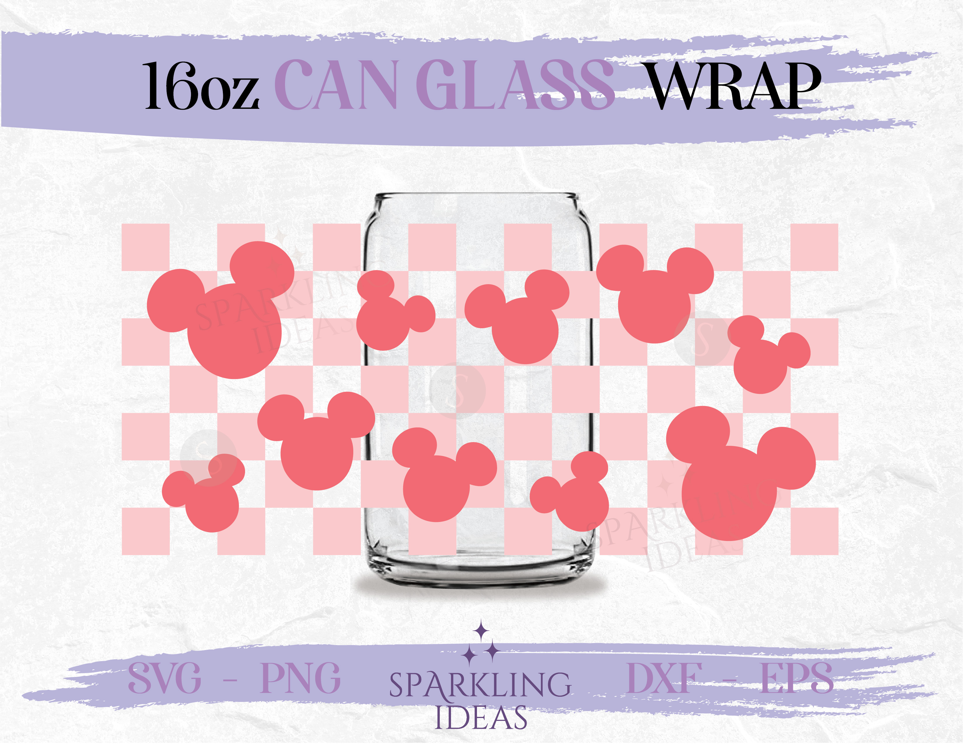 Checkered Mouse Head LIBBEY Can glass Svg 16oz, Disney Lover Wrap Svg, Mouse Head Ears Wrap Svg