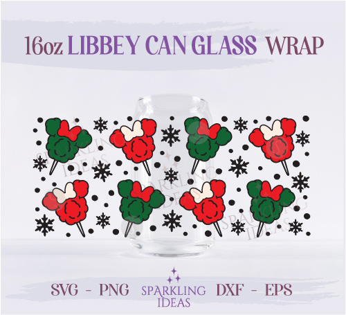 Christmas Mouse Cotton Candy Can Glass 16oz SVG, Mouse Food Ears Libbey Can Svg, Mouse Christmas Snacks Wrap Svg, Magical Christmas Wrap Svg