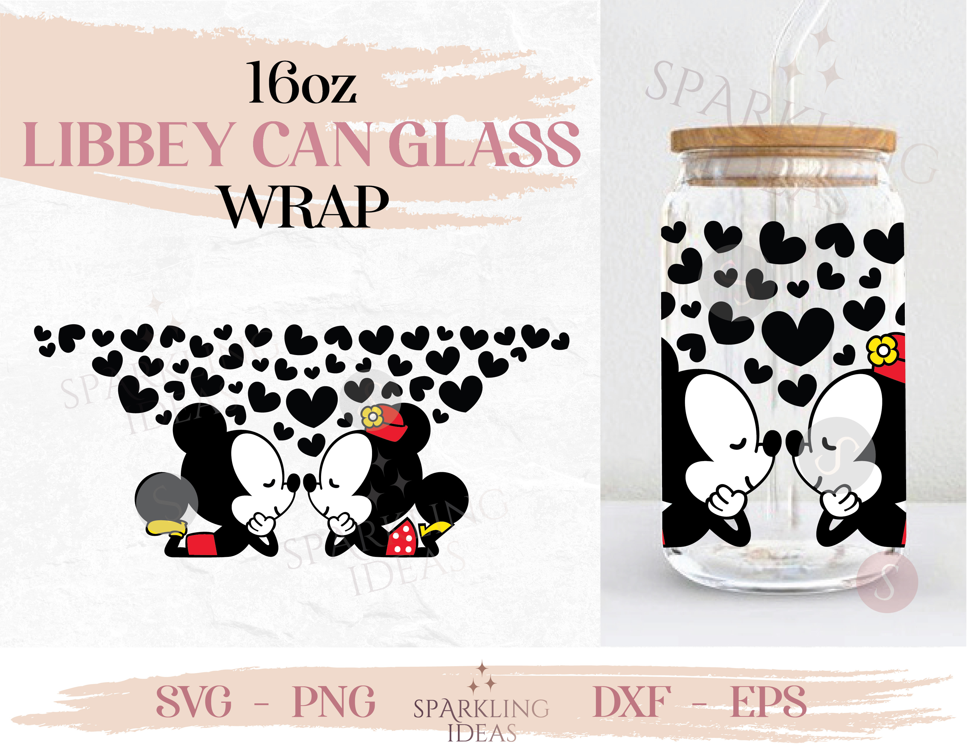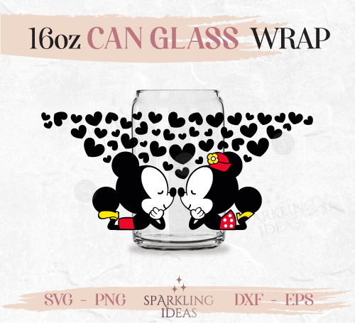 Cute baby Mouse kissing Can glass wrap SVG 16oz, Magical Valentines Libbey Glass Svg, Love Wrap svg, Mouse Valentine’s day svg
